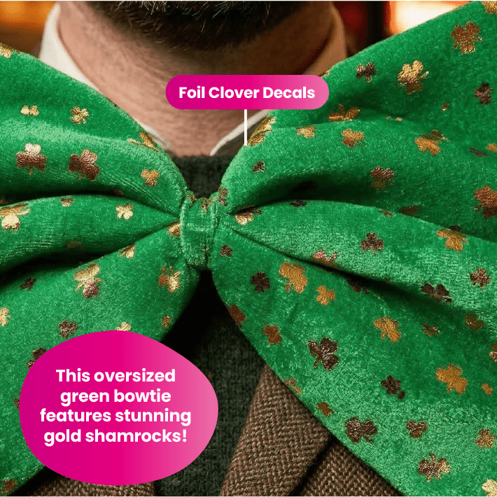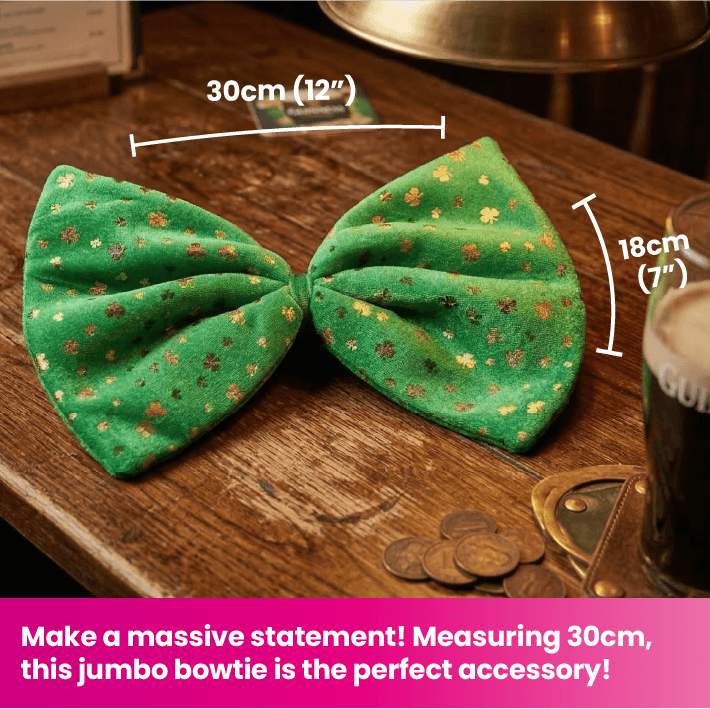 ST PATRICK'S DAY JUMBO SHAMROCK BOW TIE: You won’t be needing a Pot of Gold to look the best for St Patrick's Day, so don’t miss out on picking up our Jumbo Shamrock Bow Tie, your perfect accessory for any Irish occasion or event!