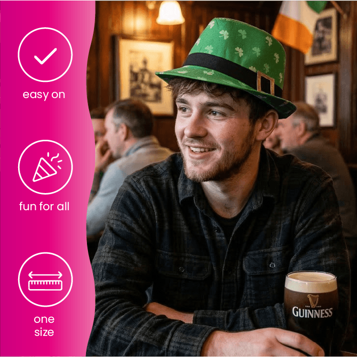 ST PATRICK'S DAY TRILBY HAT: You won’t be needing a Pot of Gold to look the best for St Patrick's Day, so don’t miss out on picking up our Adults Irish Green Trilby Hat, your perfect accessory for any Irish occasion or event!