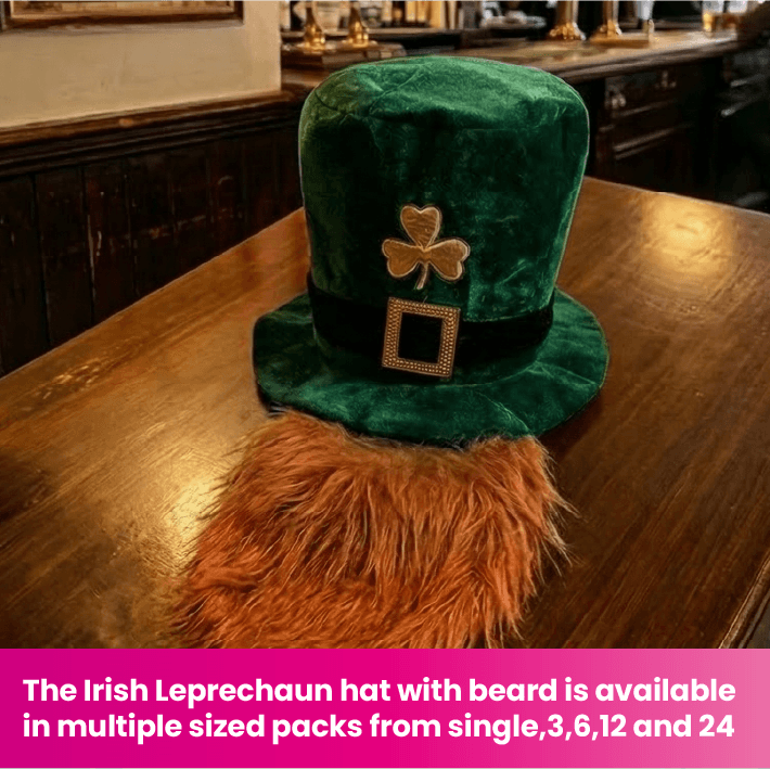 AVAILABLE IN MULTIPLE PACKS: The Irish Leprechaun Hat with Beard are available in multiple sized packs, from Single Packs to Packs of 3, Packs of 6, Packs of 12 and Packs of 24, for you to share with your friends and family!
