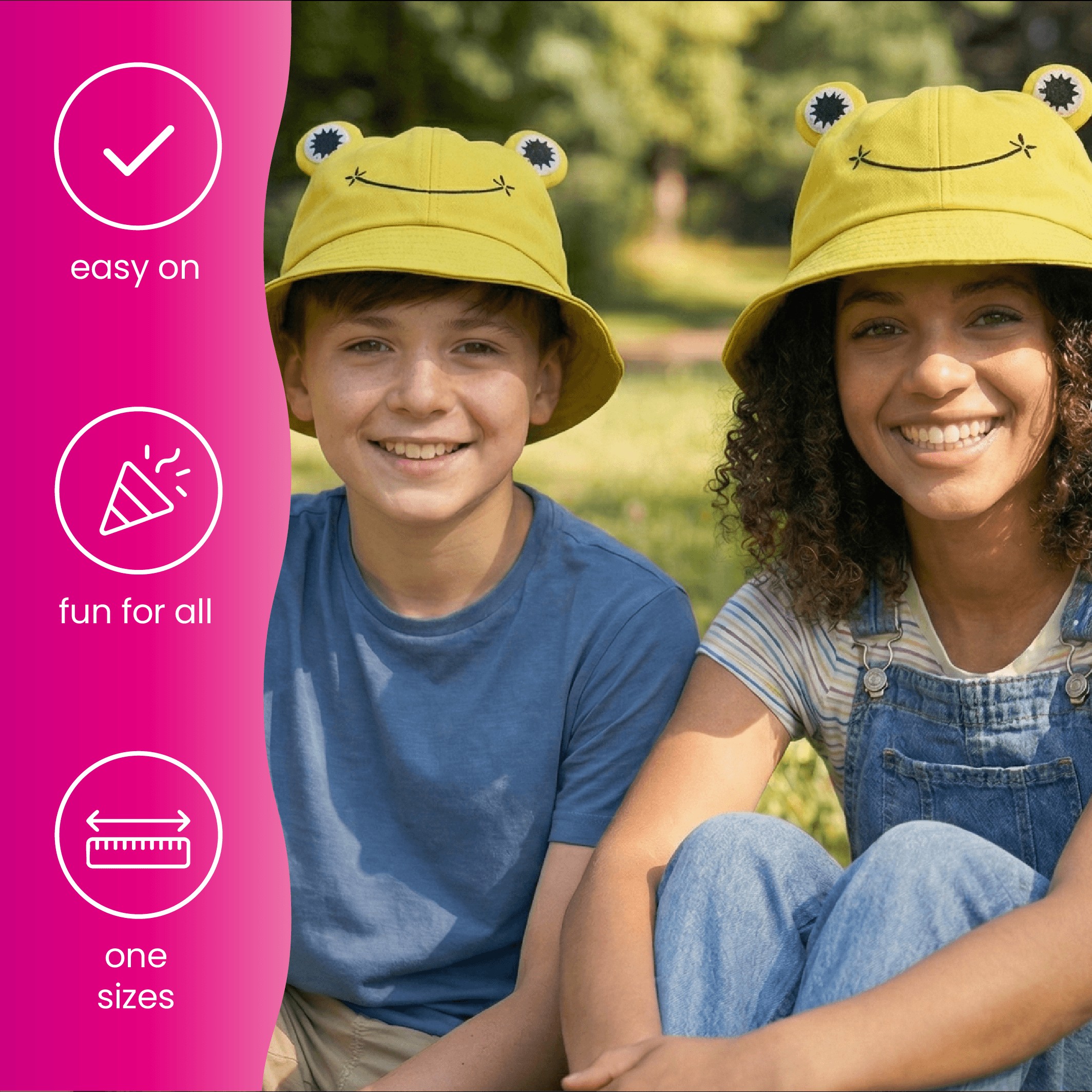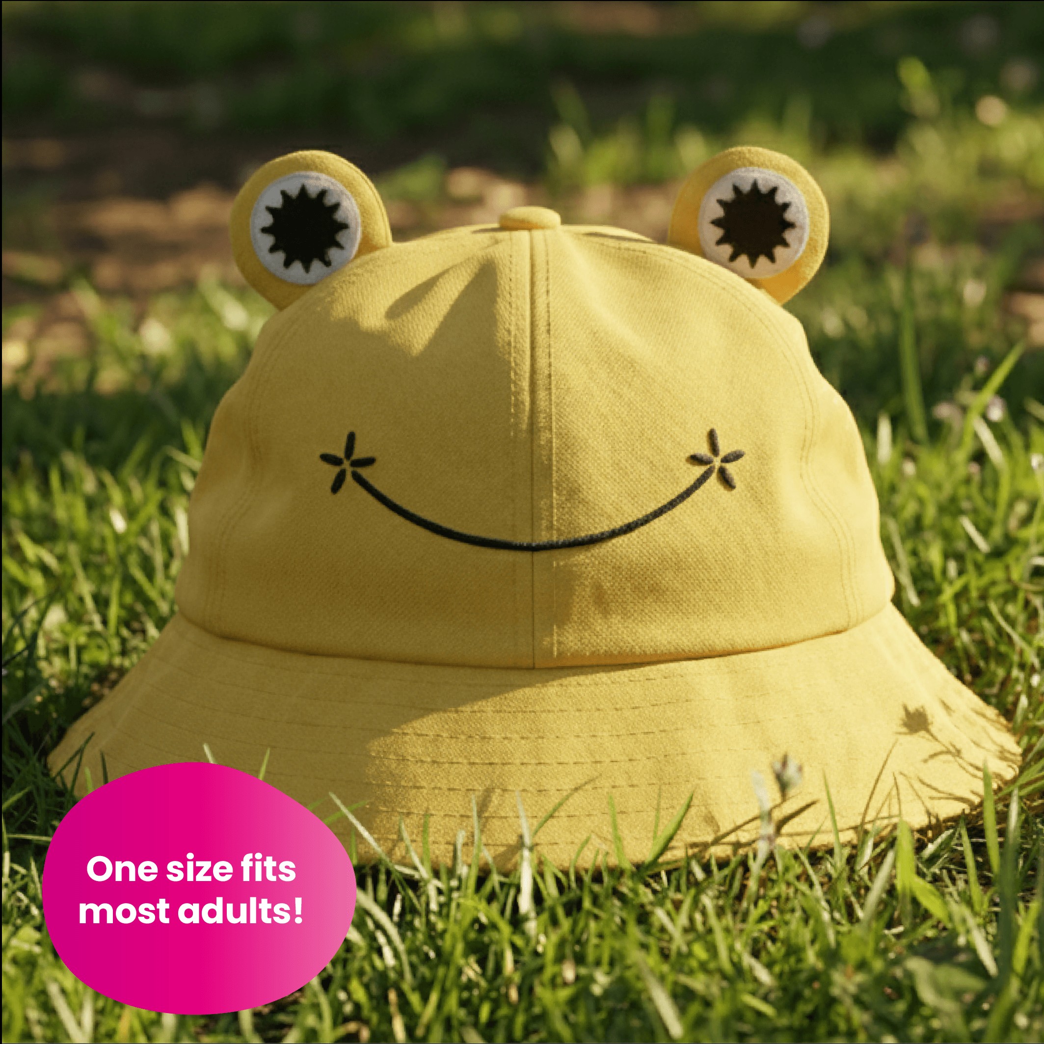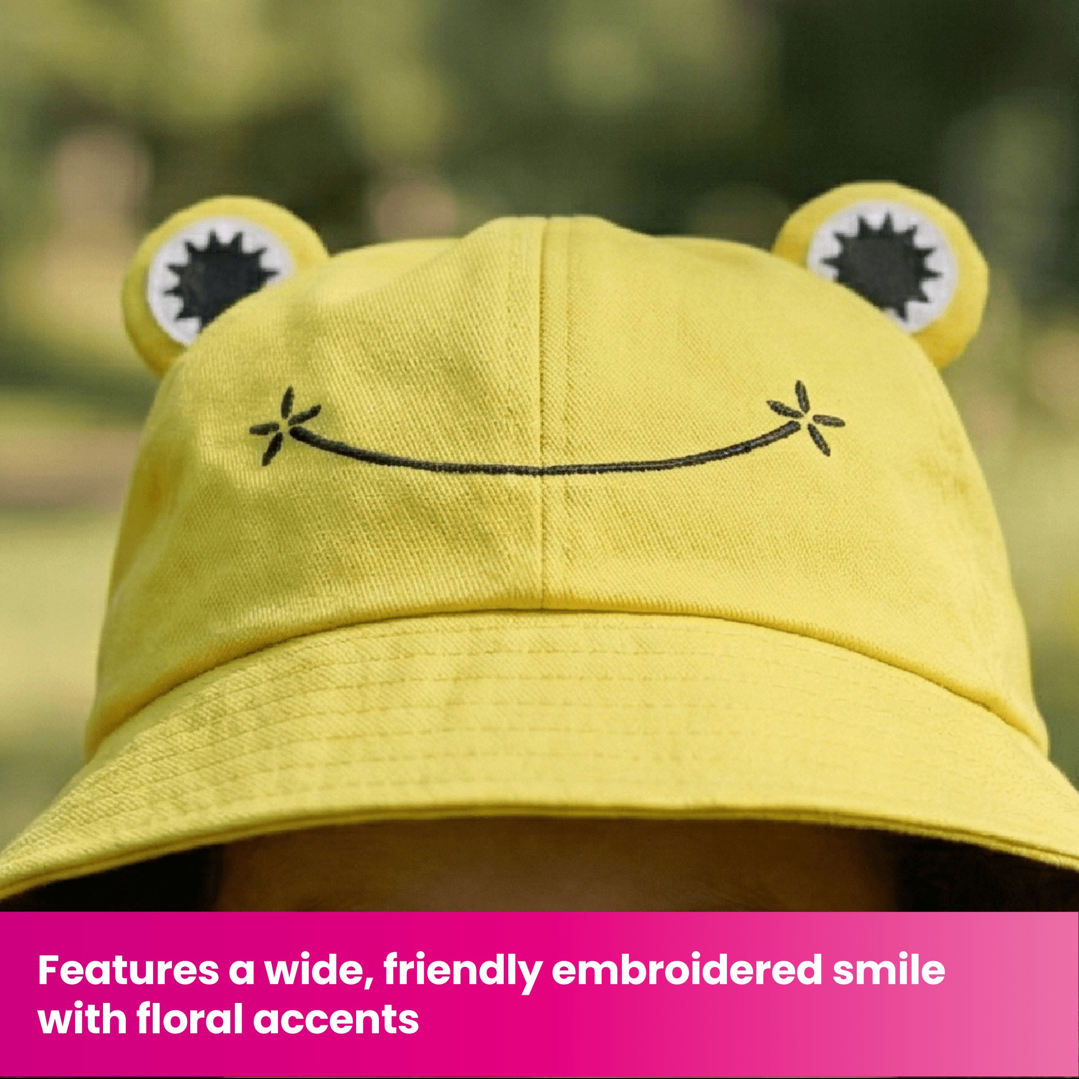 Bring a touch of quirky charm to your wardrobe with this adorable frog-themed bucket hat.