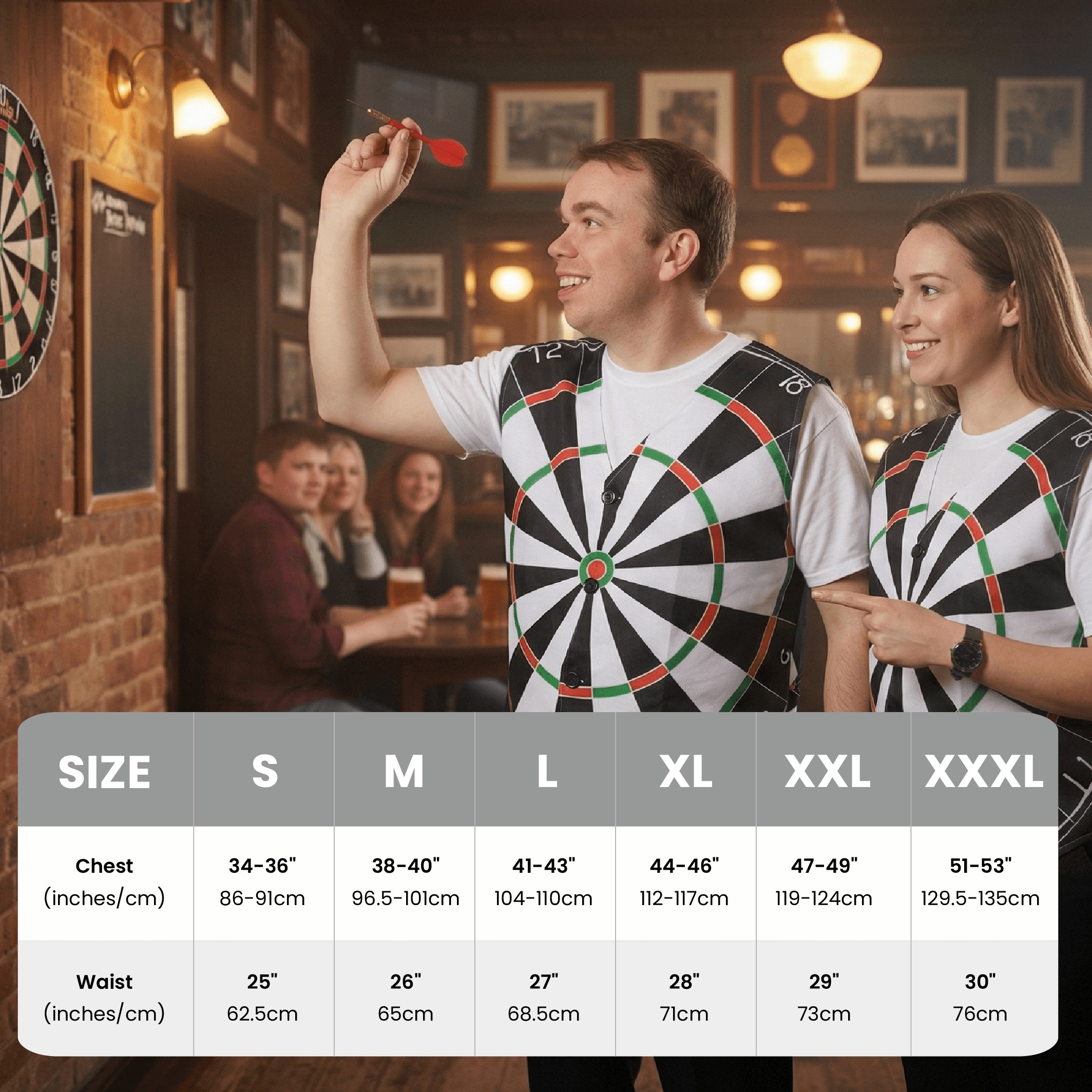 Hit the bullseye with this eye-catching Adults Dartboard Waistcoat, perfect for parties, pub nights, or anyone who loves a good game of darts.