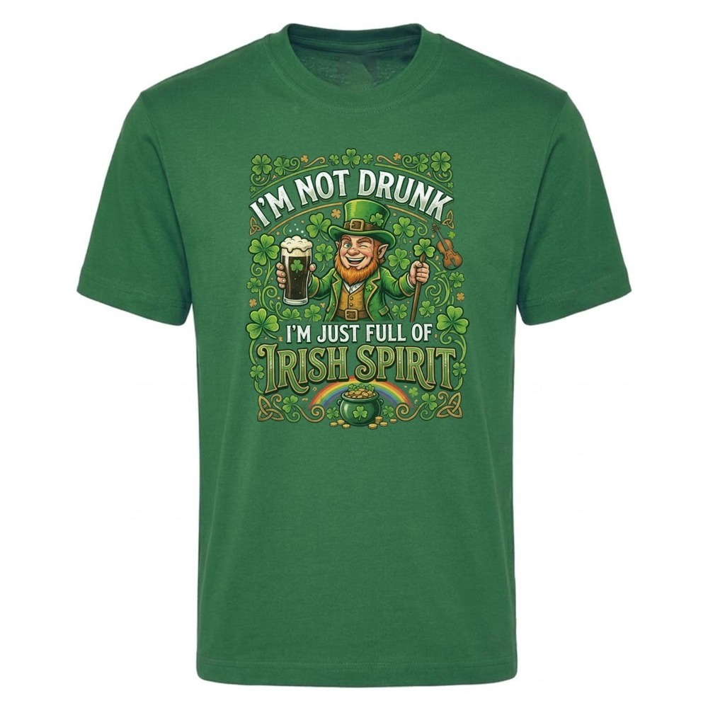 Adults Funny St Patricks Day Costume | Sequin Top Hat & T-Shirt “I'm Not Drunk I'm Just Full of Irish Spirit” | Green Tee with Green Print