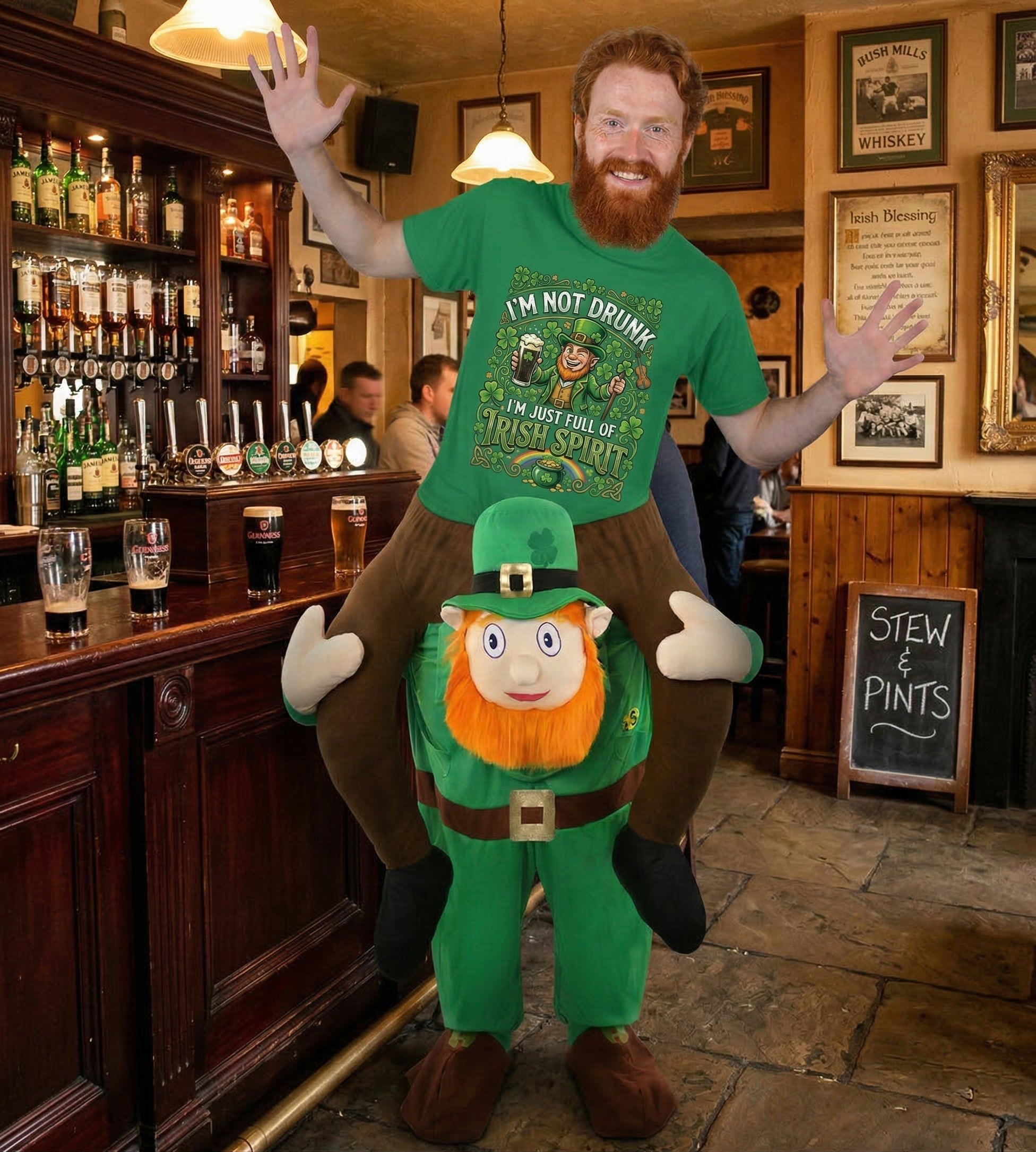 Celebrate St Patricks Day in style with this fun novelty costume set. Featuring a green t-shirt with the playful slogan “I'm Not Drunk I'm Just Full of Irish Spirit” printed in green, along with a festive Irish green trilby hat, this outfit is perfect for pub crawls, parties, festivals, and themed celebrations.