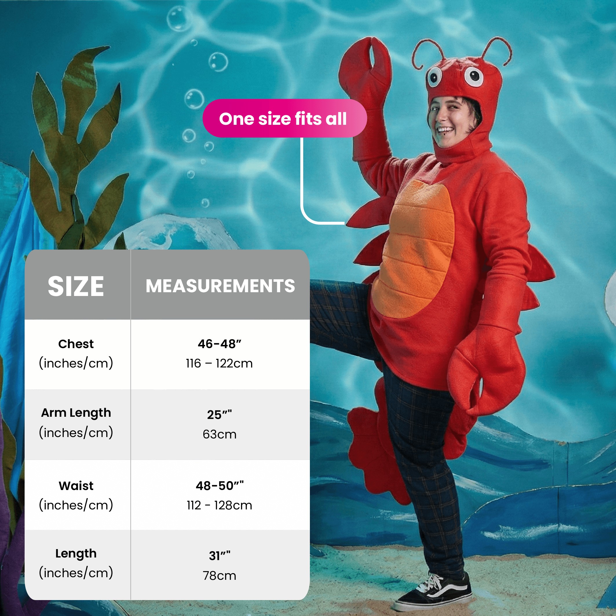 Whether you're diving into a sea-themed event, entering a fancy dress contest, or simply after a hilarious conversation starter, this Adults Lobster Costume is sure to reel in plenty of smiles.