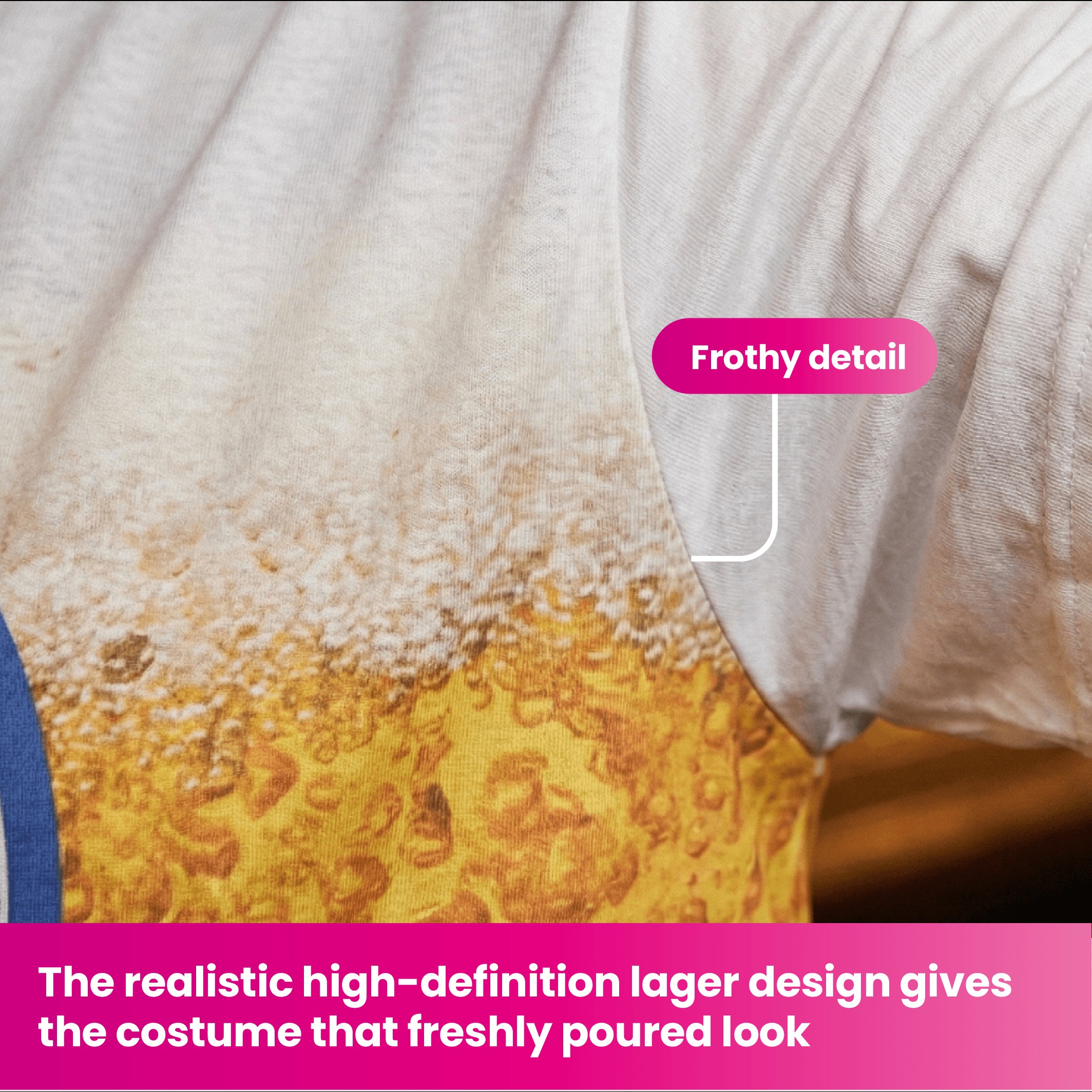 Simple, comfortable and eye-catching, this novelty beer costume is a great choice for group outfits, party nights and fun themed events where making an impression is a must.