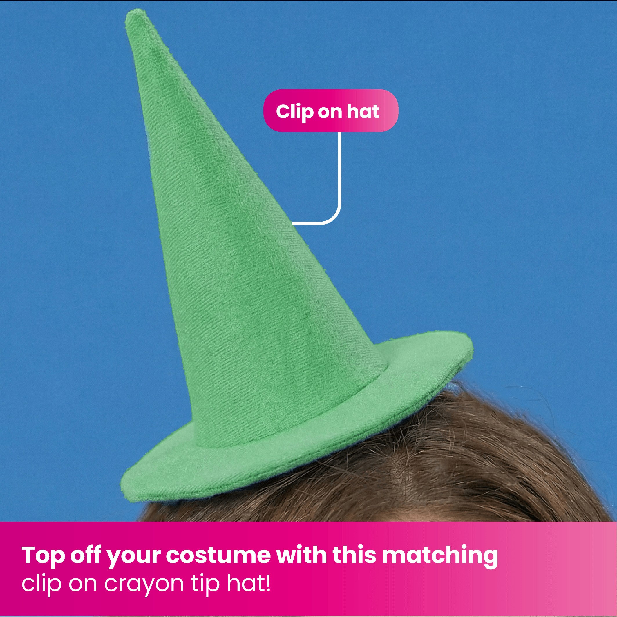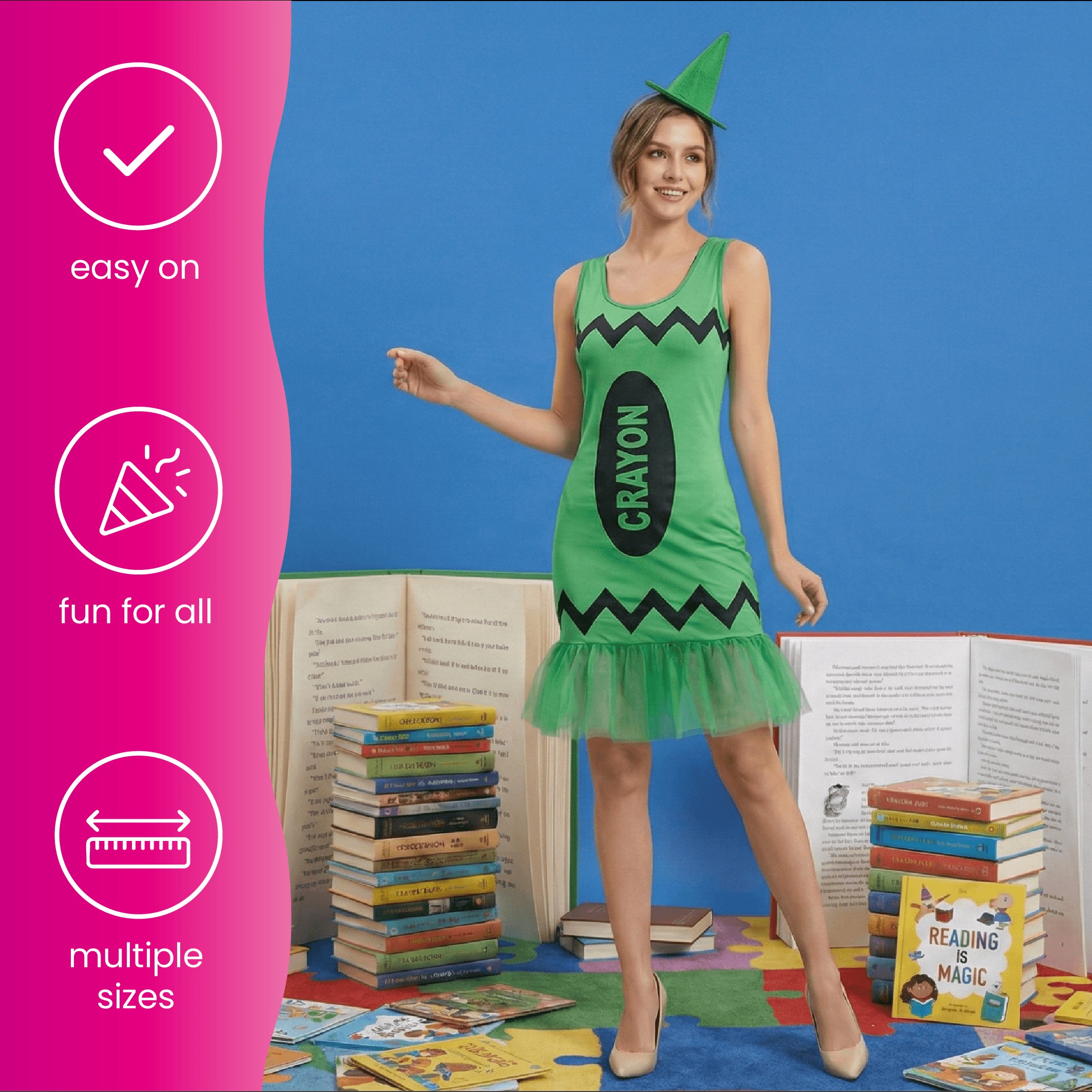 - GREEN CRAYON DRESS DETAILS: Your Ladies Green Crayon Dress is a Green Crayon dress with a Tutu skirt attached and a matching Mini Green clip-on Crayon Hat to complete the look!