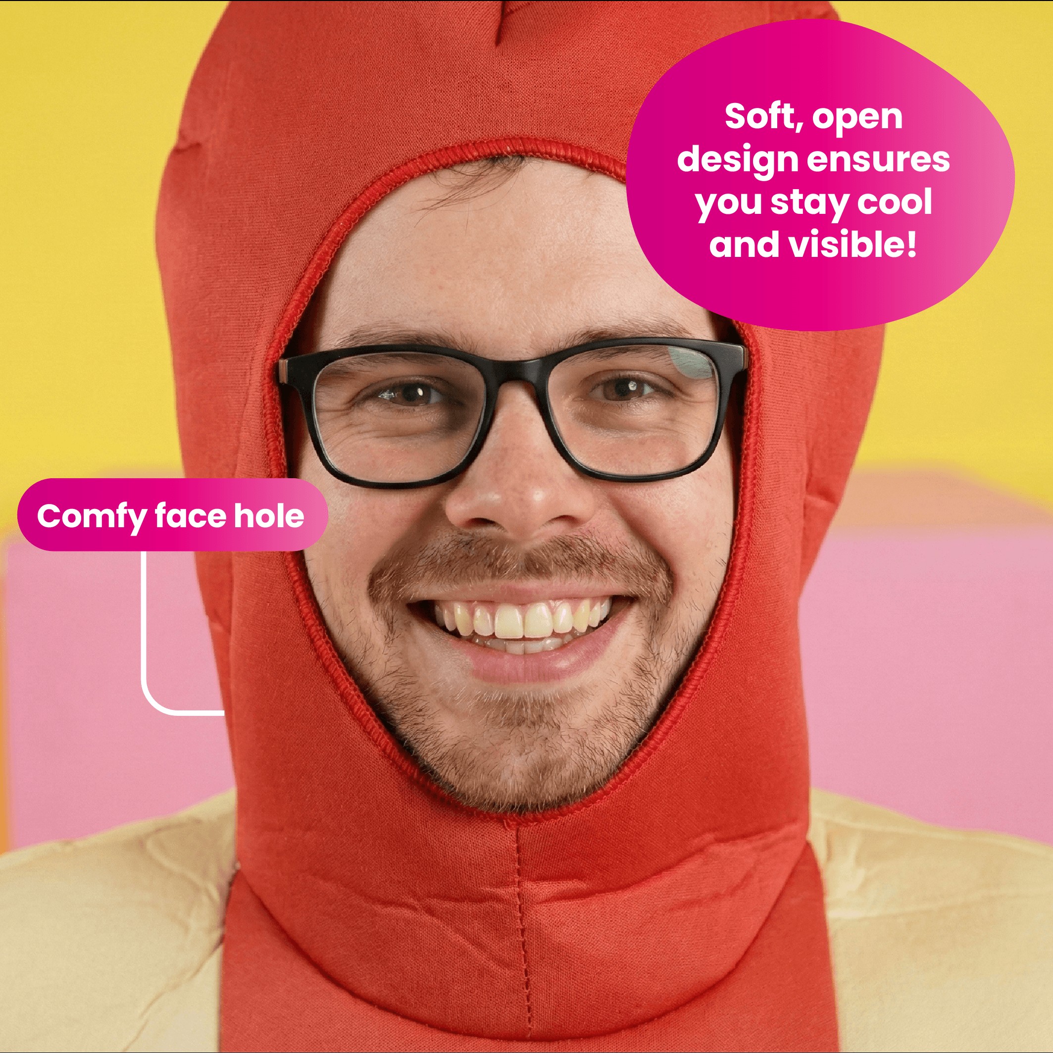 Made from durable, soft foam with vibrant printed detailing, this Hotdog Costume is designed to last through any party or event while keeping its bold, eye-catching look.