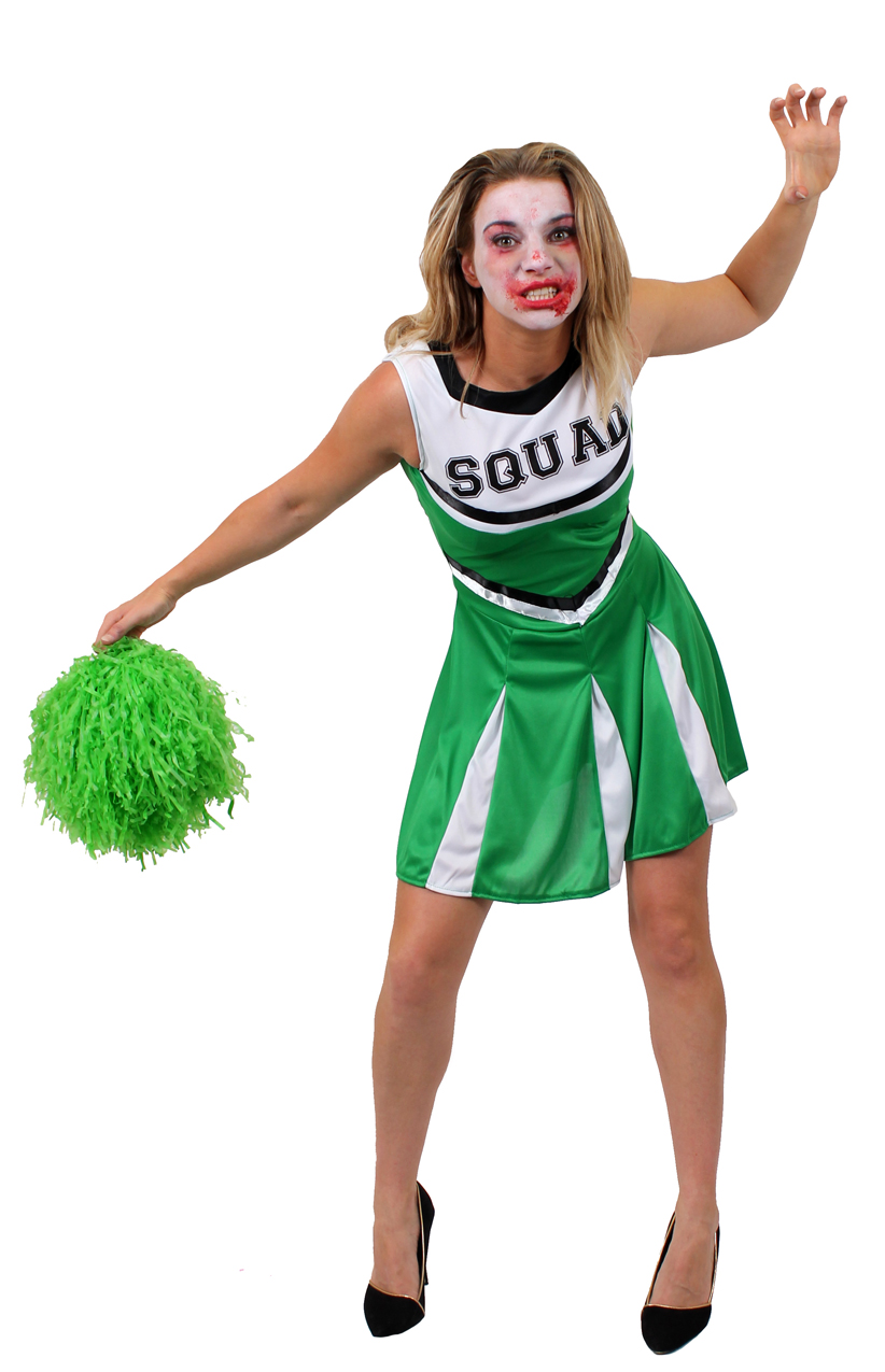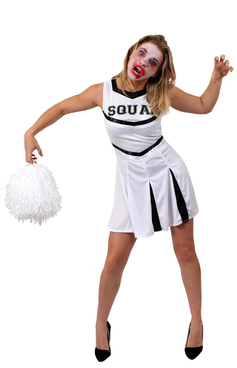It’s not always about looking horrifying on Halloween, to some it’s about looking your best and most alluringly good looking, but fitting with the Halloween spirit, and that’s exactly what we’ve got for you ladies out there with this ‘Zombie Cheerleading Girls Costume’! Become the ‘life’ of the dead party by taming the hearts of everyone in the room to join you to dance and sing along! Being the leader of the lifeless isn’t easy, but you’ll have no problem pulling it off in this Fancy Dress Costume! This costume includes some fake blood and some black, white and red makeup for you ladies who are really trying to give off the “I’m dead” look!