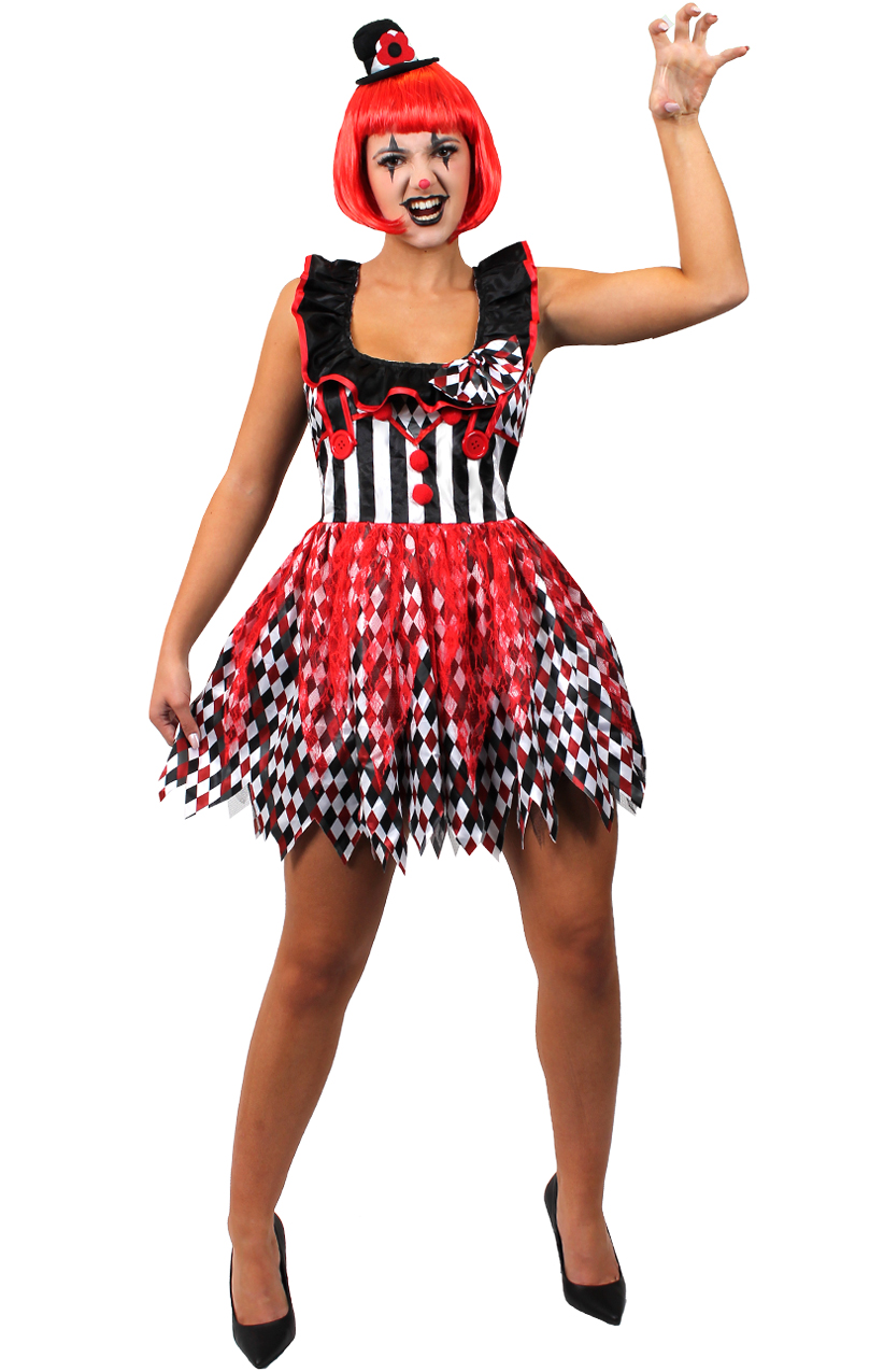 Clowns, family friendly bozos that make us all laugh, scare us to the ends of the earth, there never seems to be an in-between with them, but this costume will make it very clear that this is the night the clown is out for blood, with this Killer Clown Costume! Wearing this clown costume with its lovely dominant colours of black and red with brushes of white will make it certain that everyone knows who and where you are! Whether you decide to make it frightening or Sexy is up to you on the night of the dead! Whatever you choose, you’ll be guaranteed to do it looking your best in the spirit of Halloween!