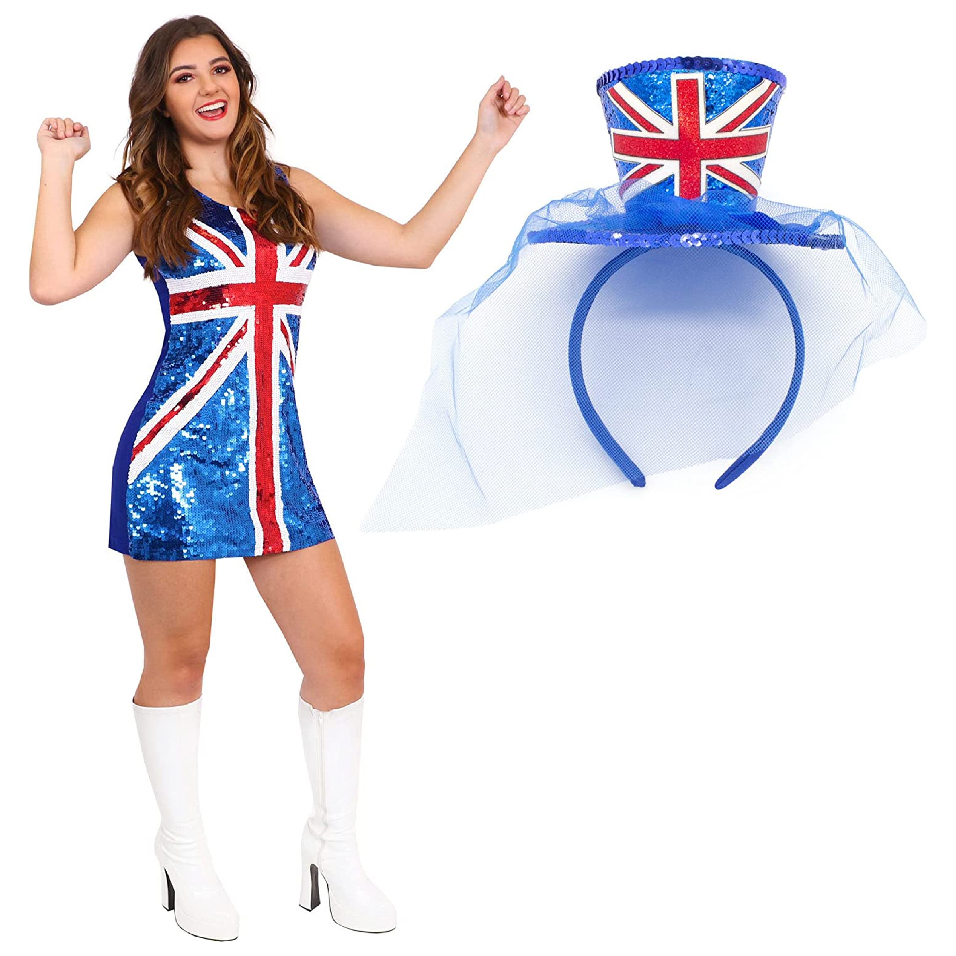 Sequin Union Jack Dress + Union Jack Hat Head Band
