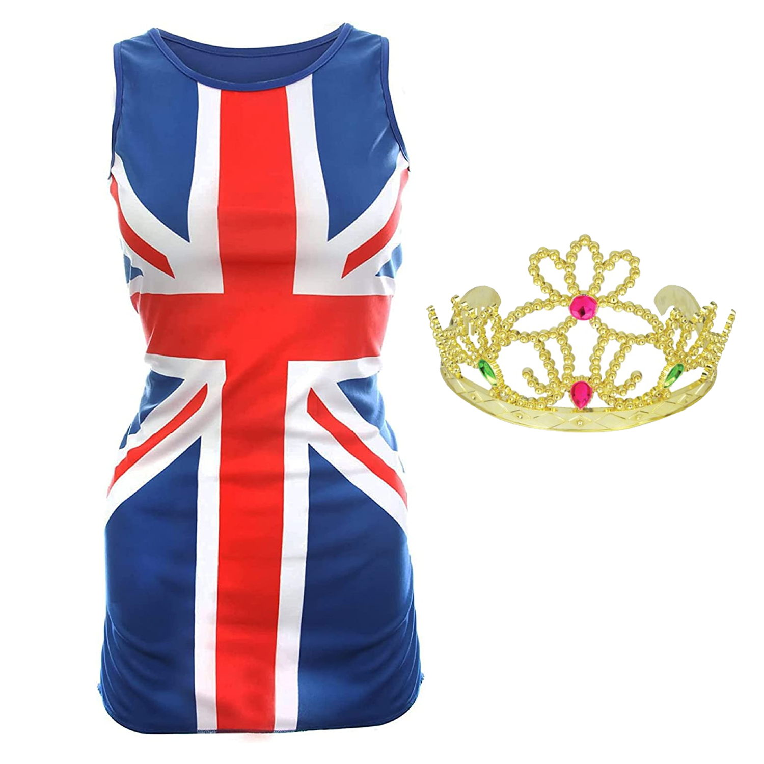 Ladies Union Jack Dress With Tiara