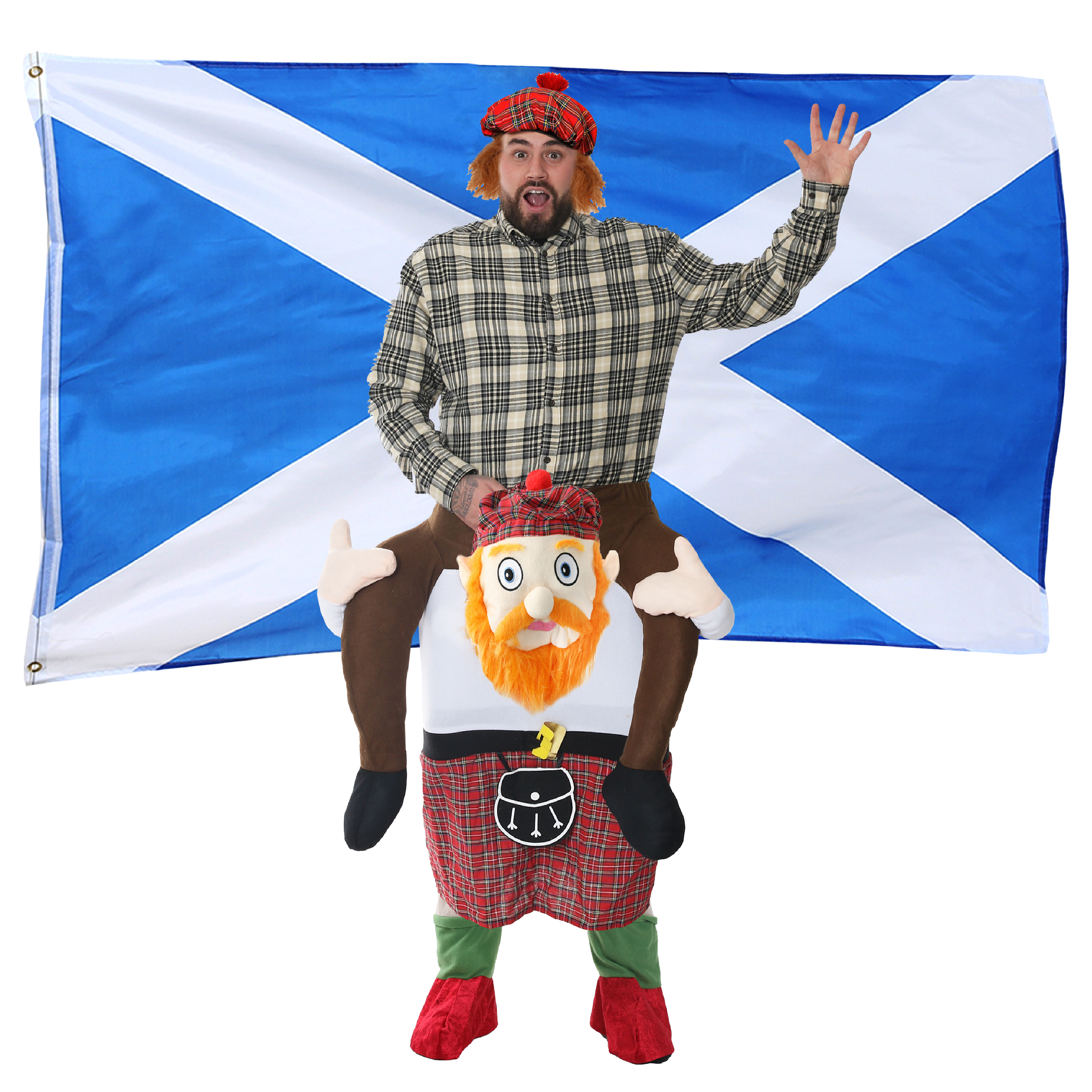 Large 5 x 3ft Scottish Flag with Tartan Kilt and T