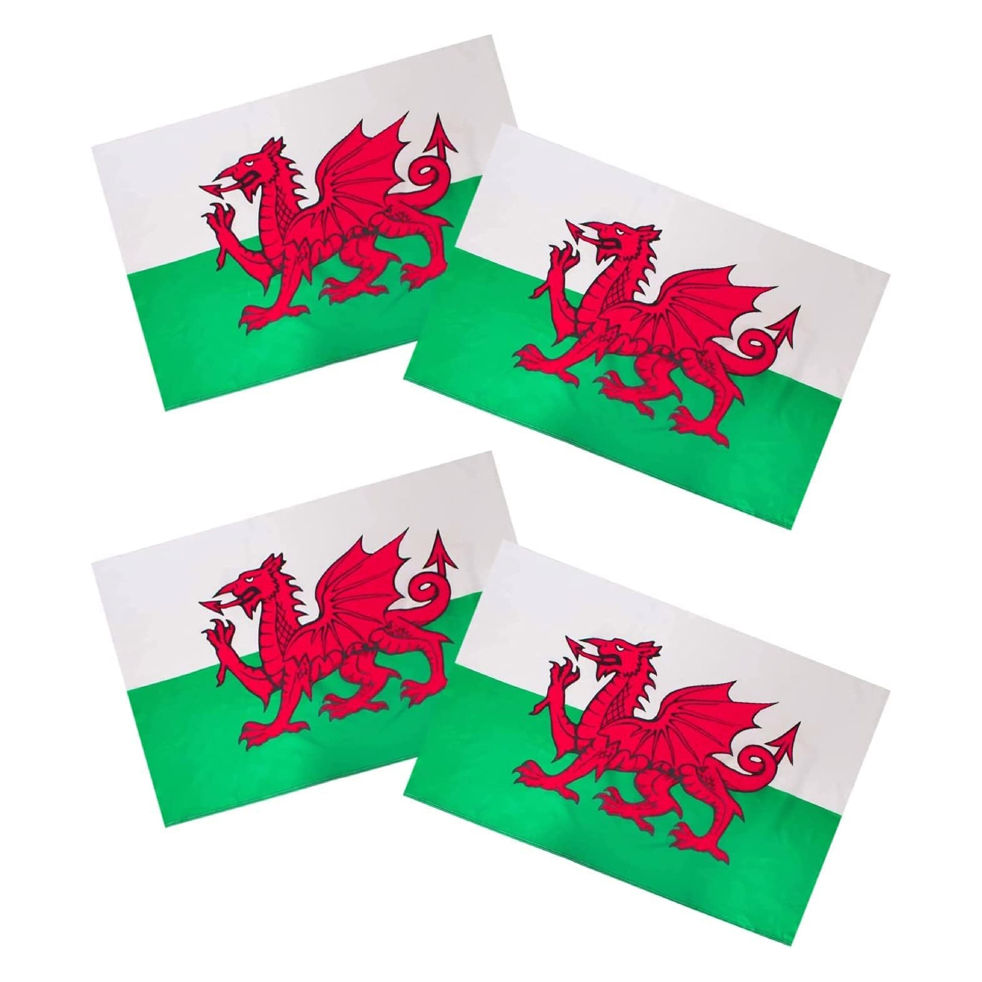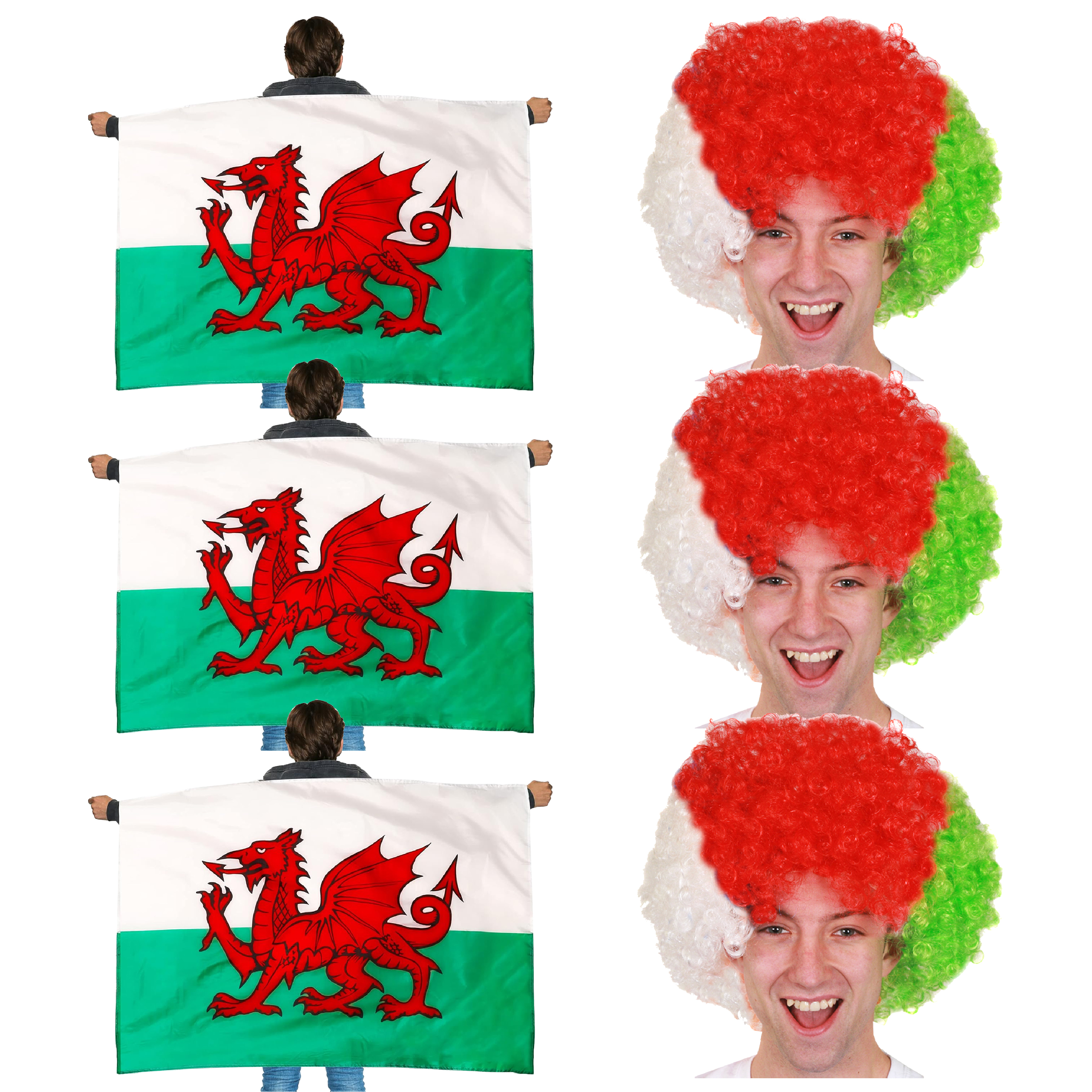 3X Welsh Supporters Afro Wig & 3X Cape Flag