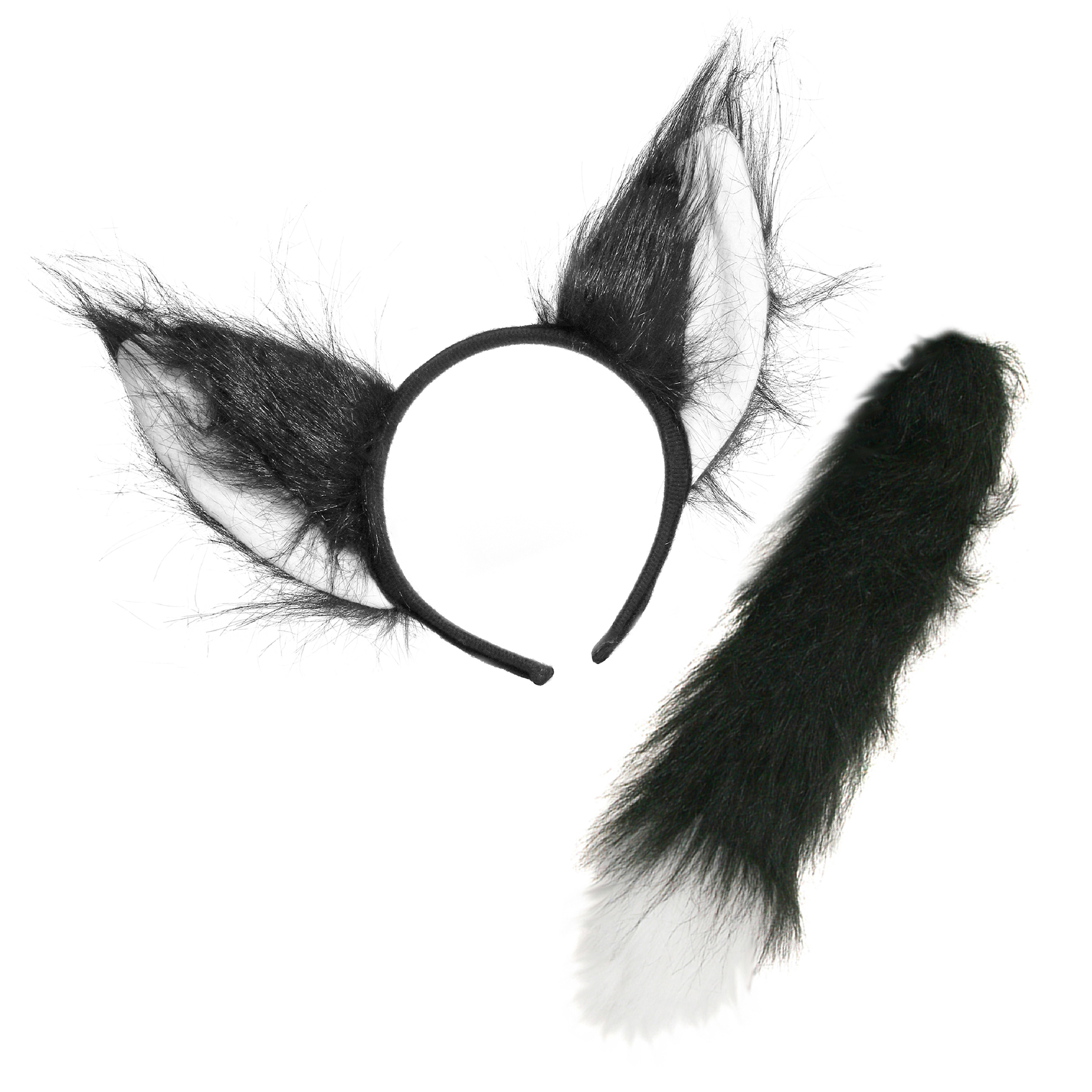 Black Cat Set - Ears Headband & Thick Tail