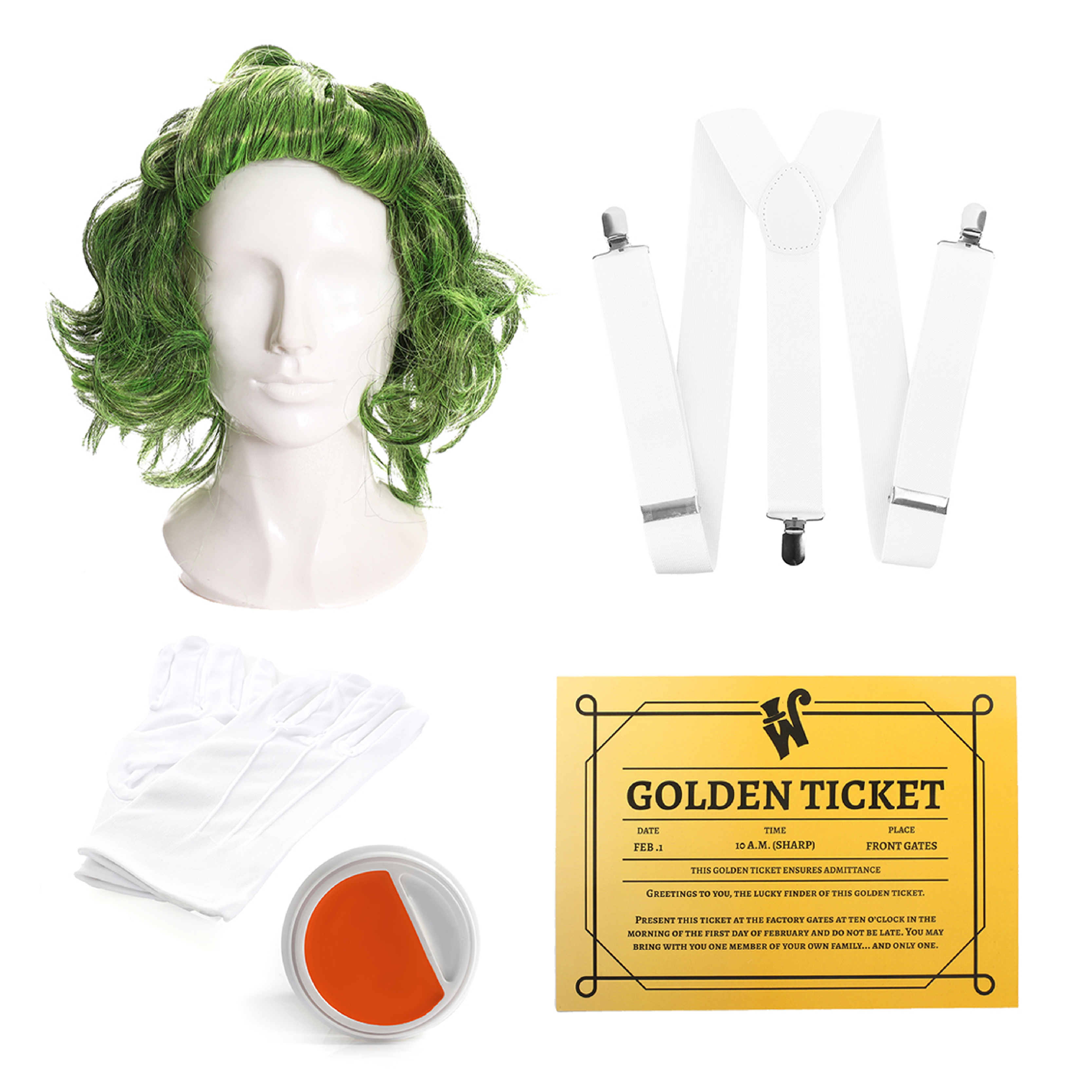 Blue Wig & Face Paint Golden Ticket Winner Set