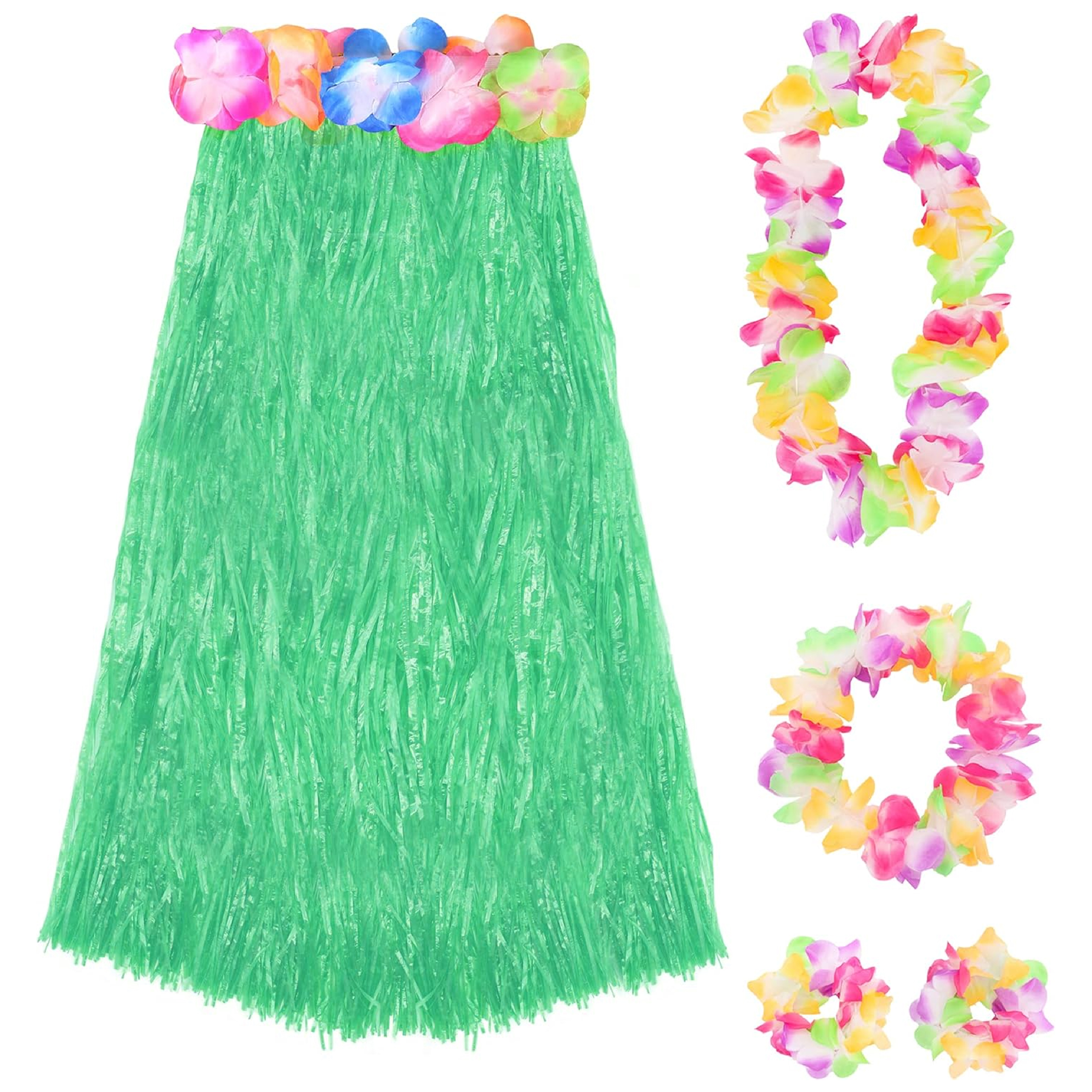 80cm Hawaiian Long Green Hula Skirt & Lei