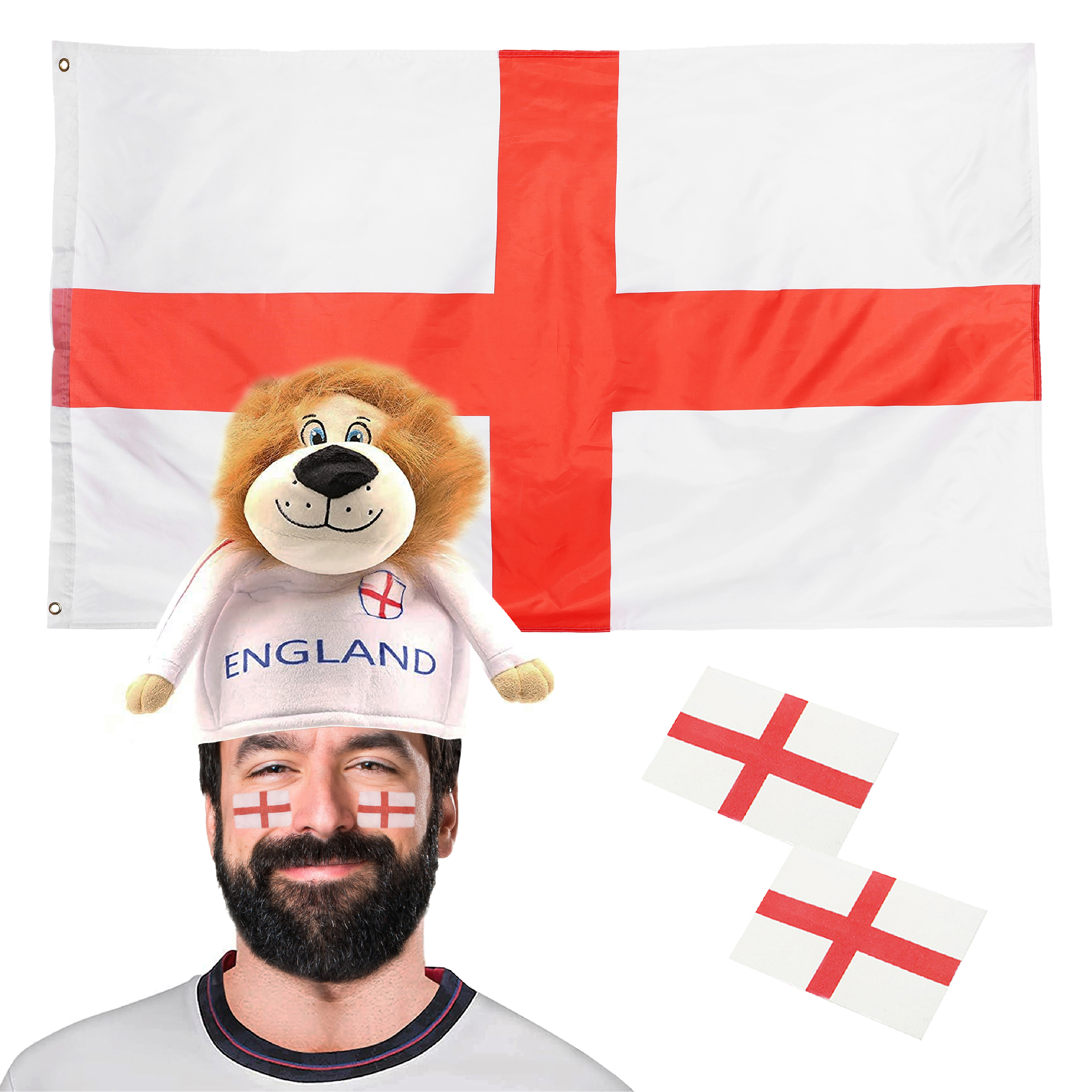 England Supporters Set - Flag, Lion Hat & Tattoos