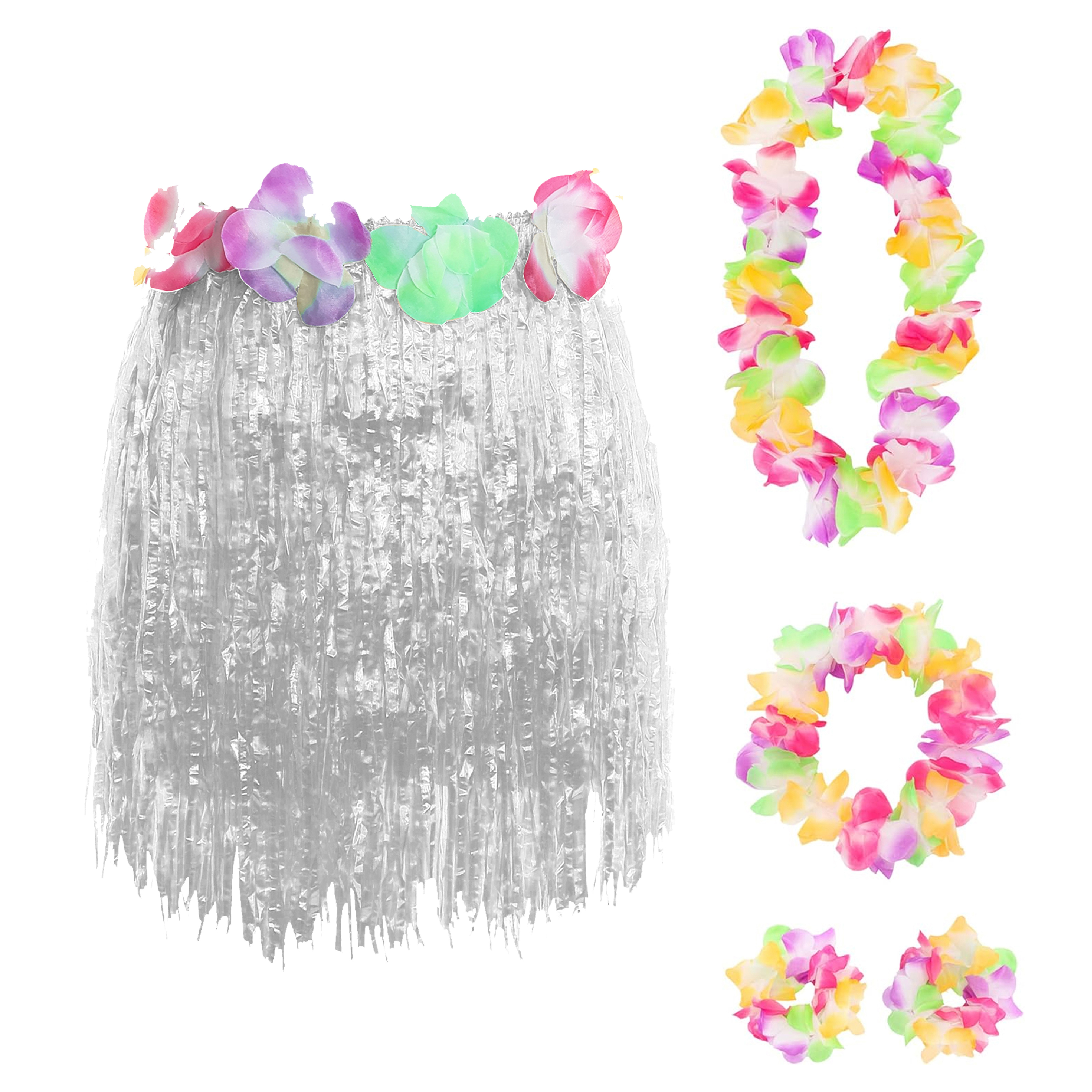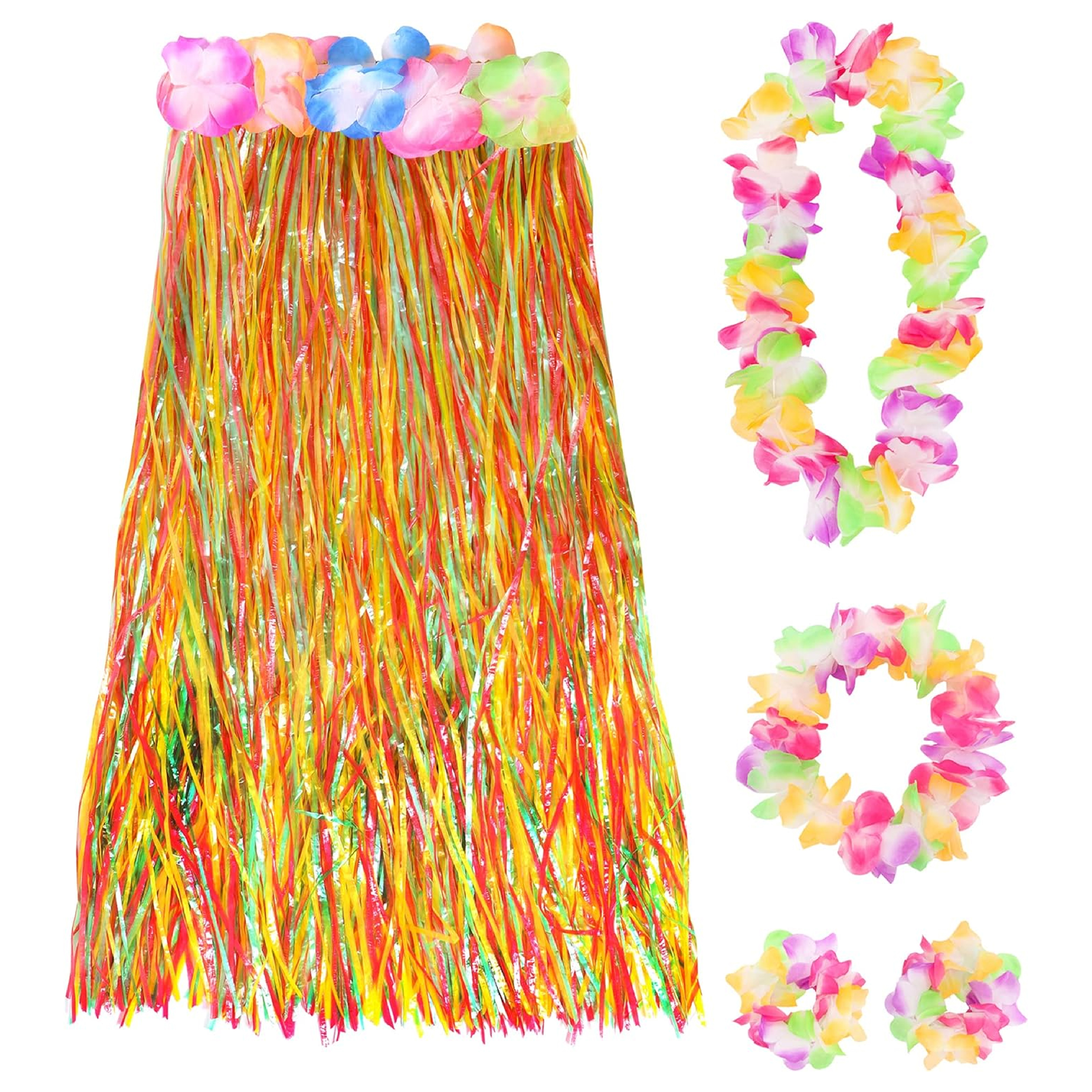 80cm Hawaiian Long Multicoloured Hula Skirt & Lei