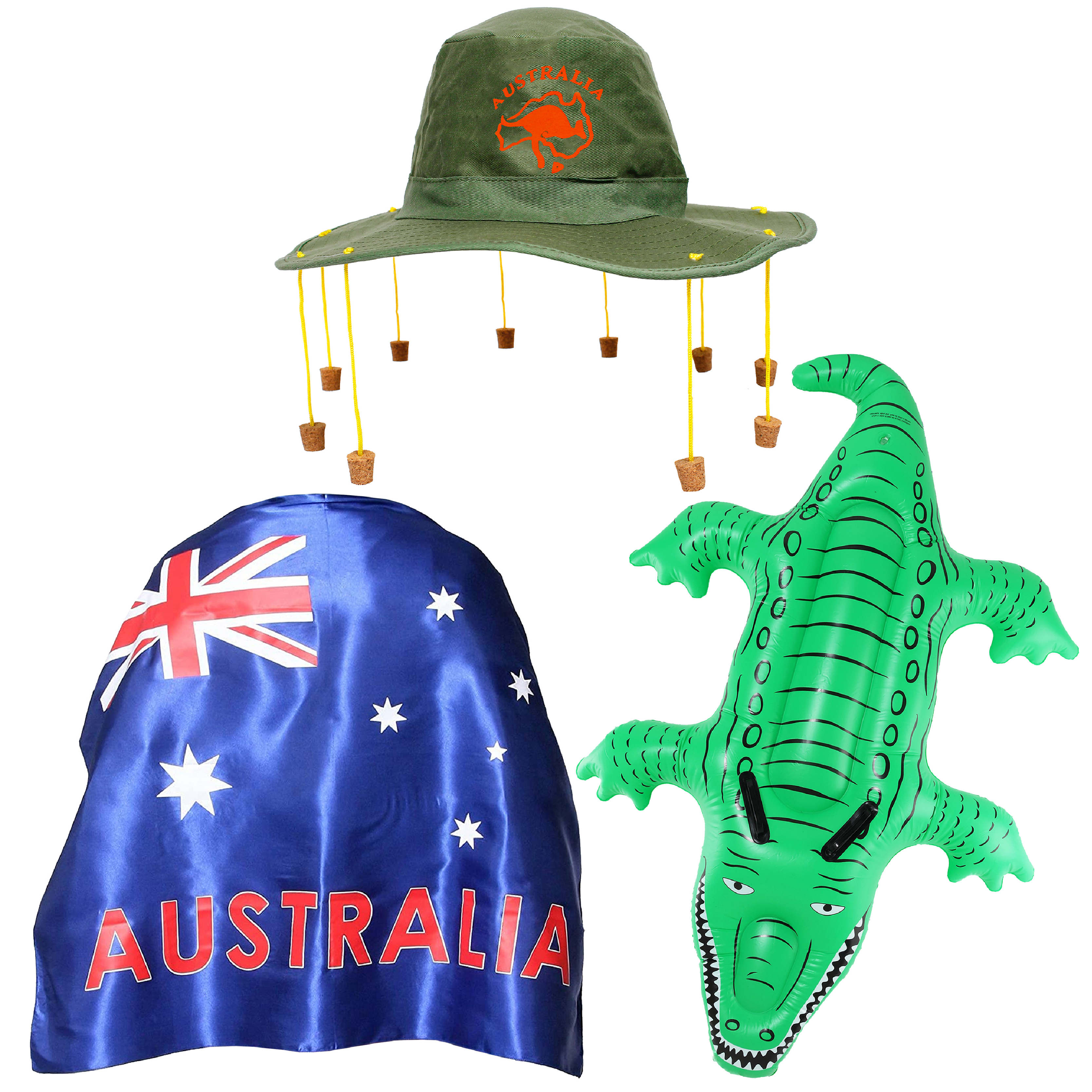 Australia Set 3 Piece Flag, Hat, Inflatable Crocod