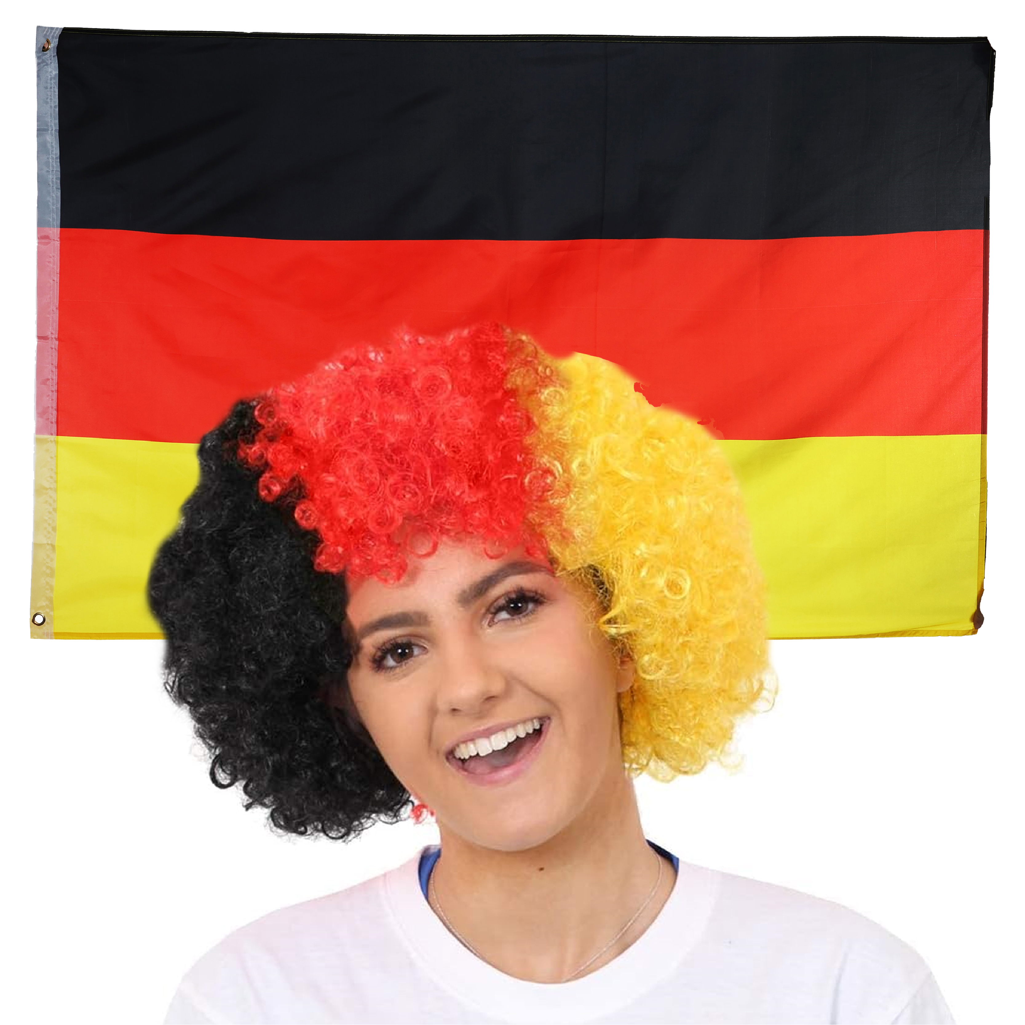 Large 5ft x 3ft Germany Flag & Afro Wig
