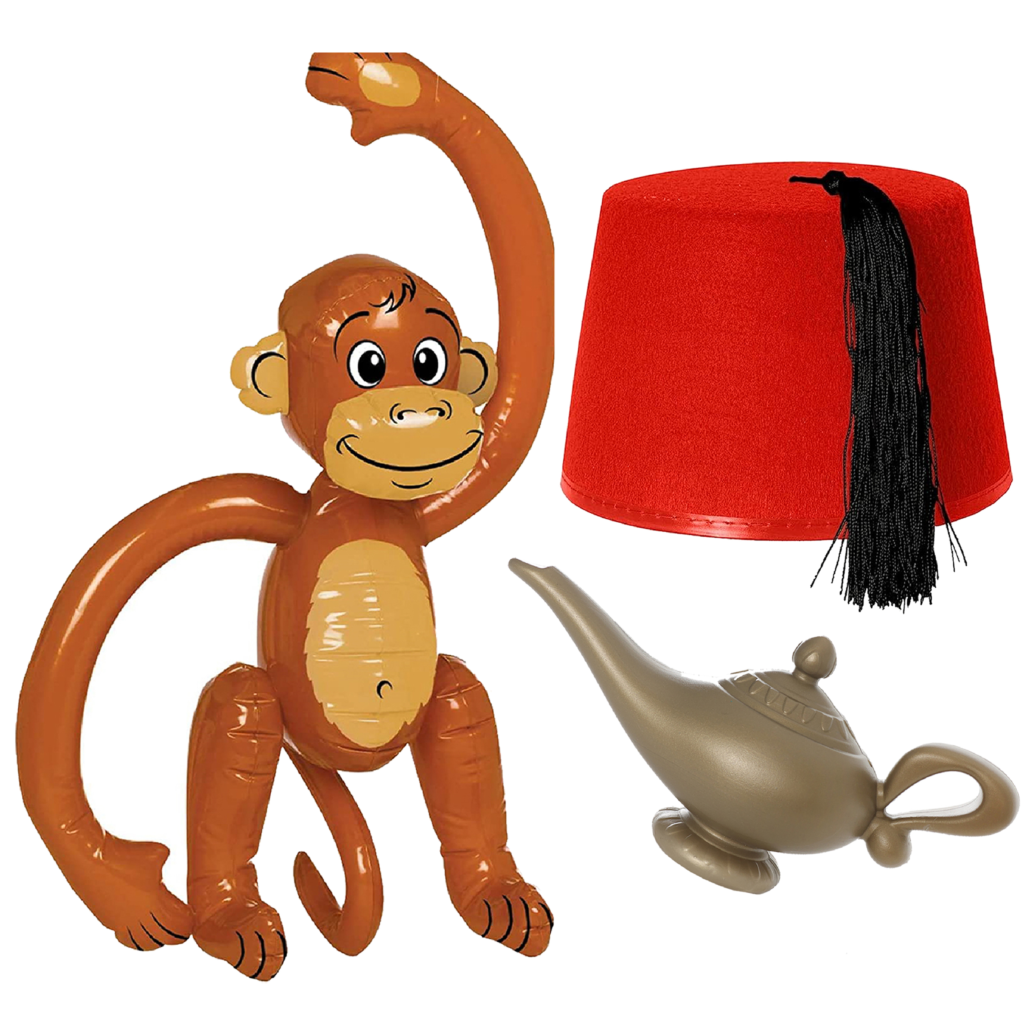 Gold Genie Lamp, Red Fez & Inflatable Monkey Set