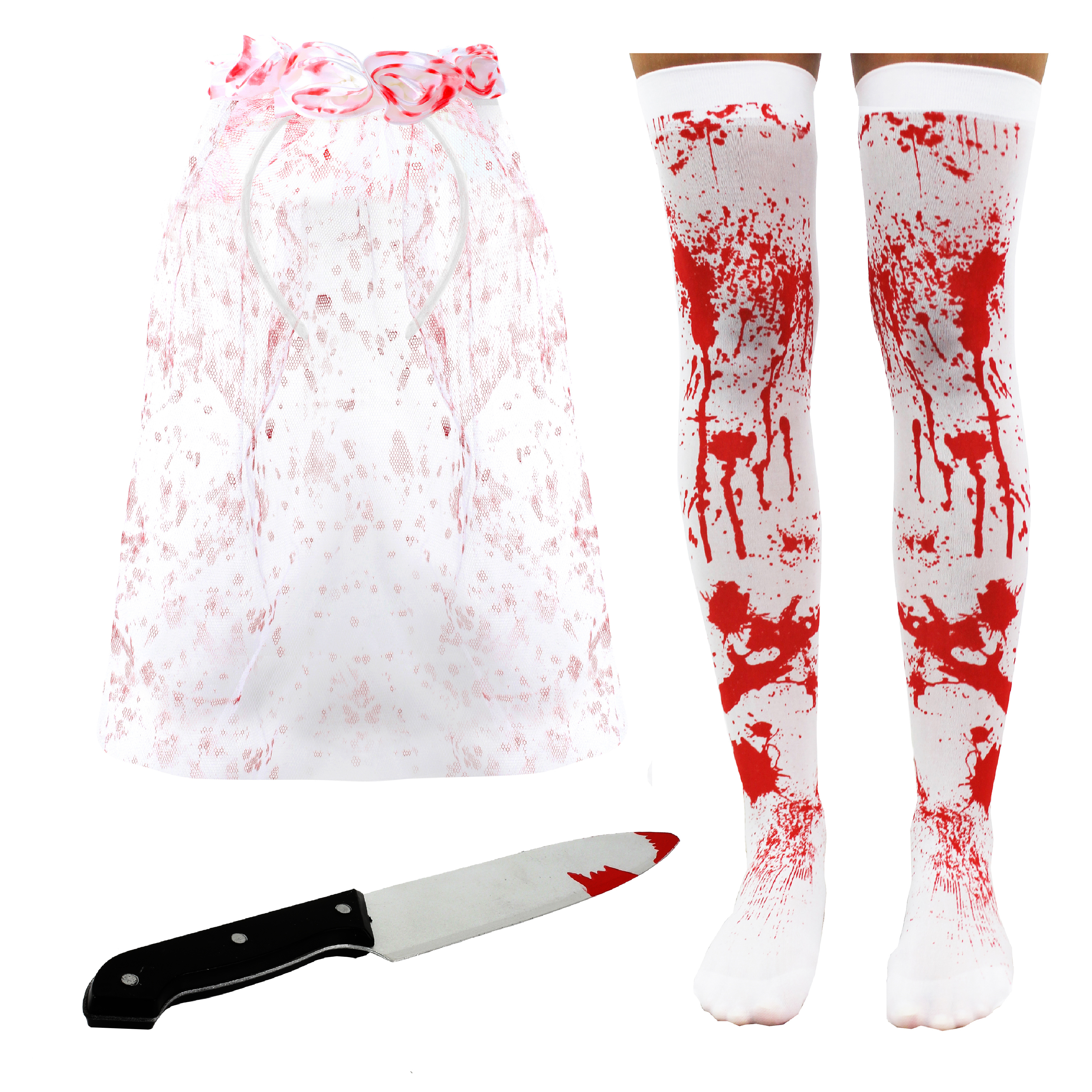 Bloody Bride Accessory Set - Veil, Stockings & Kni