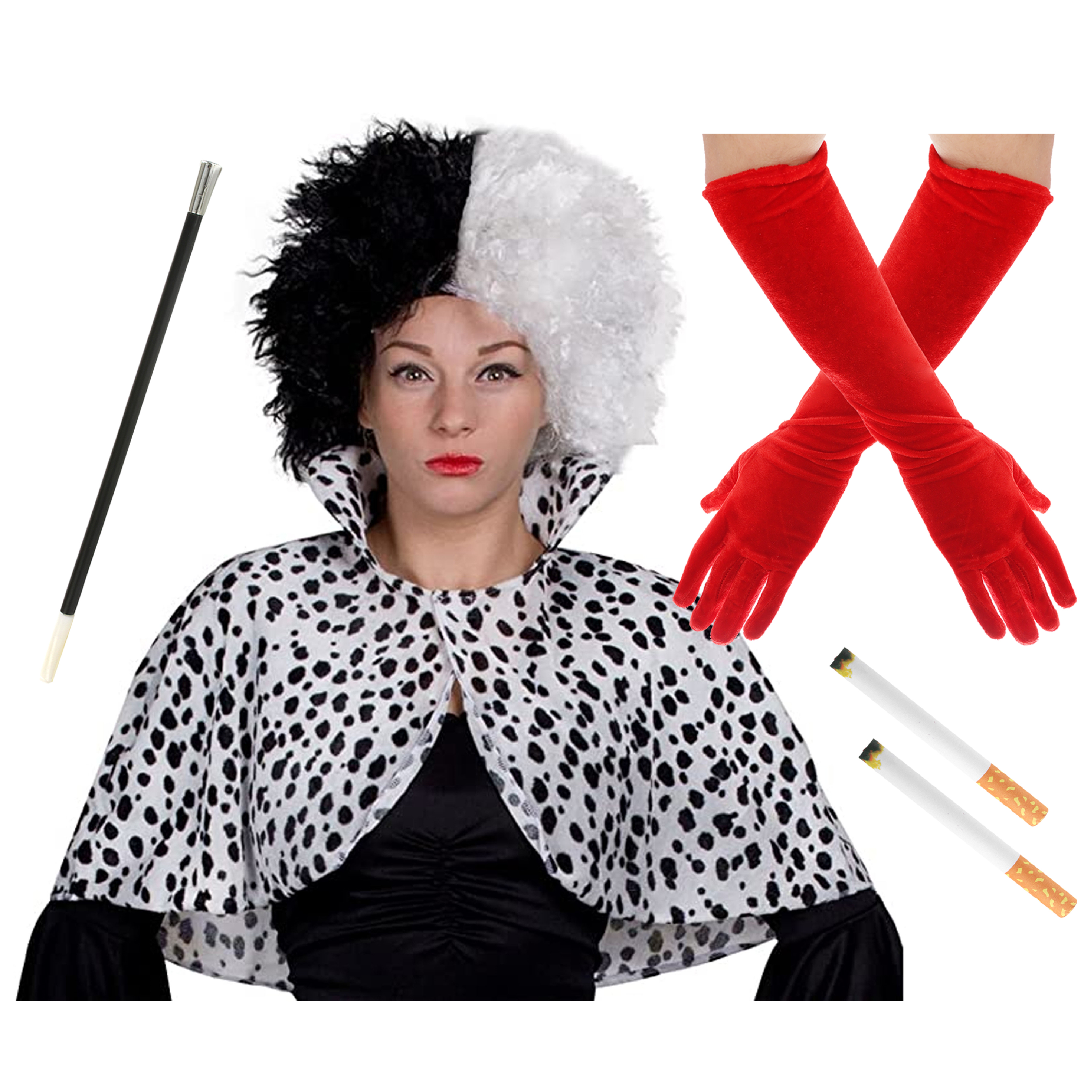 Evil Dog Lady Accessory Set - Crimped Wig, Dalmati