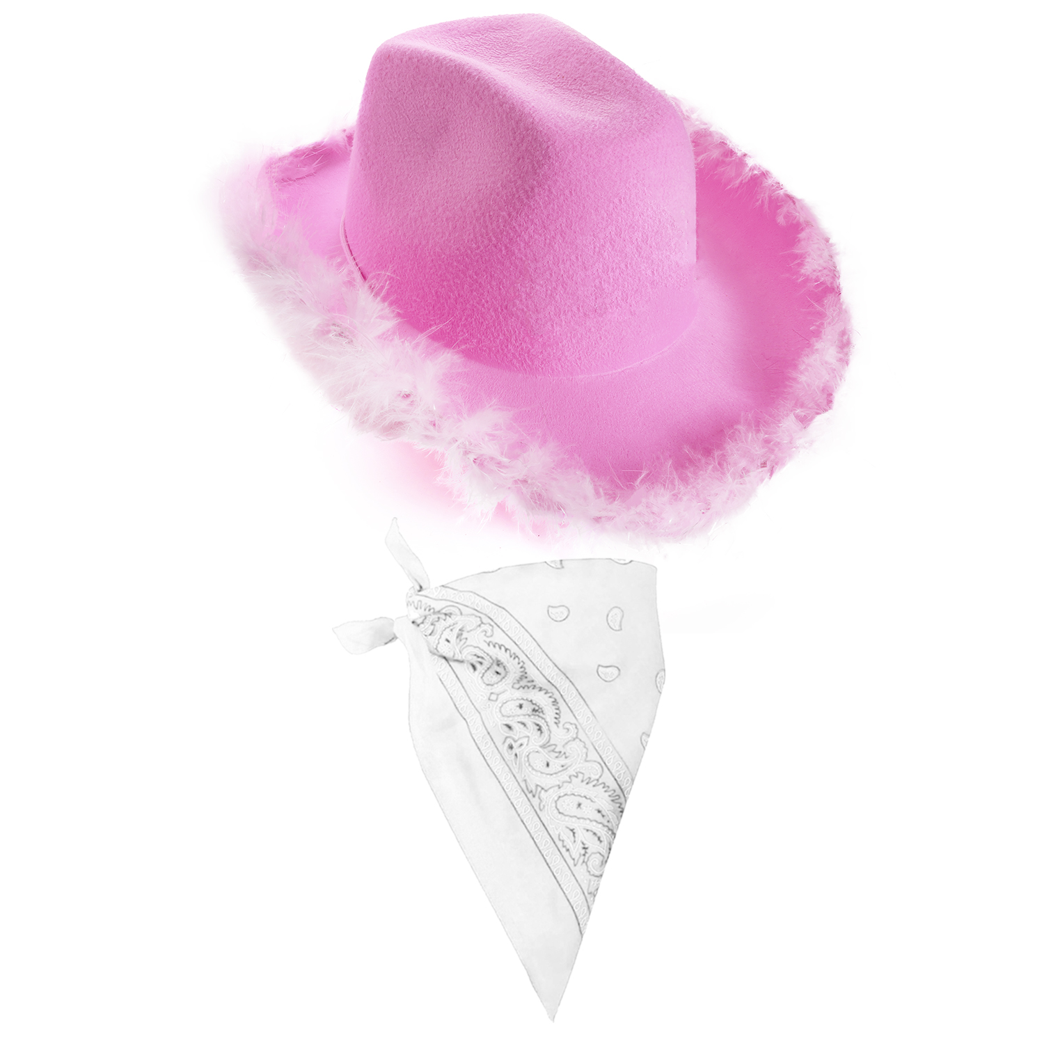 Lilac Pink Cowboy Hat with Marabou Trim + White Pa