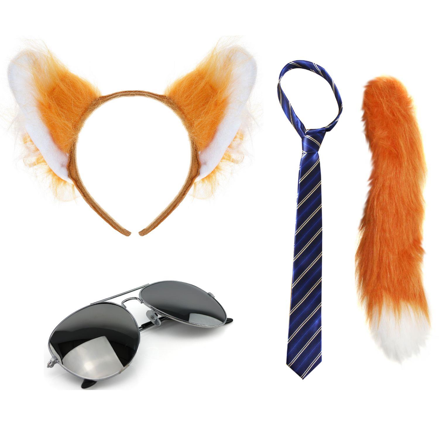 Nick Fox Costume | 4 Pcs | Ears, Tie, Thin Tail &