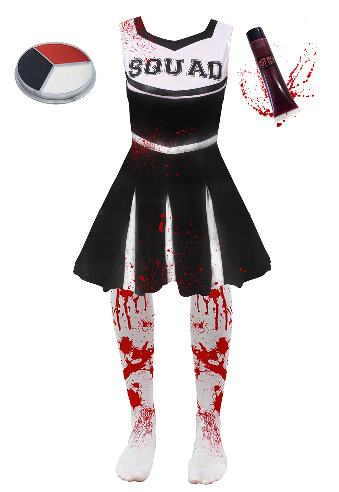Girls Red Zombie Cheerleader Halloween Fancy Dress