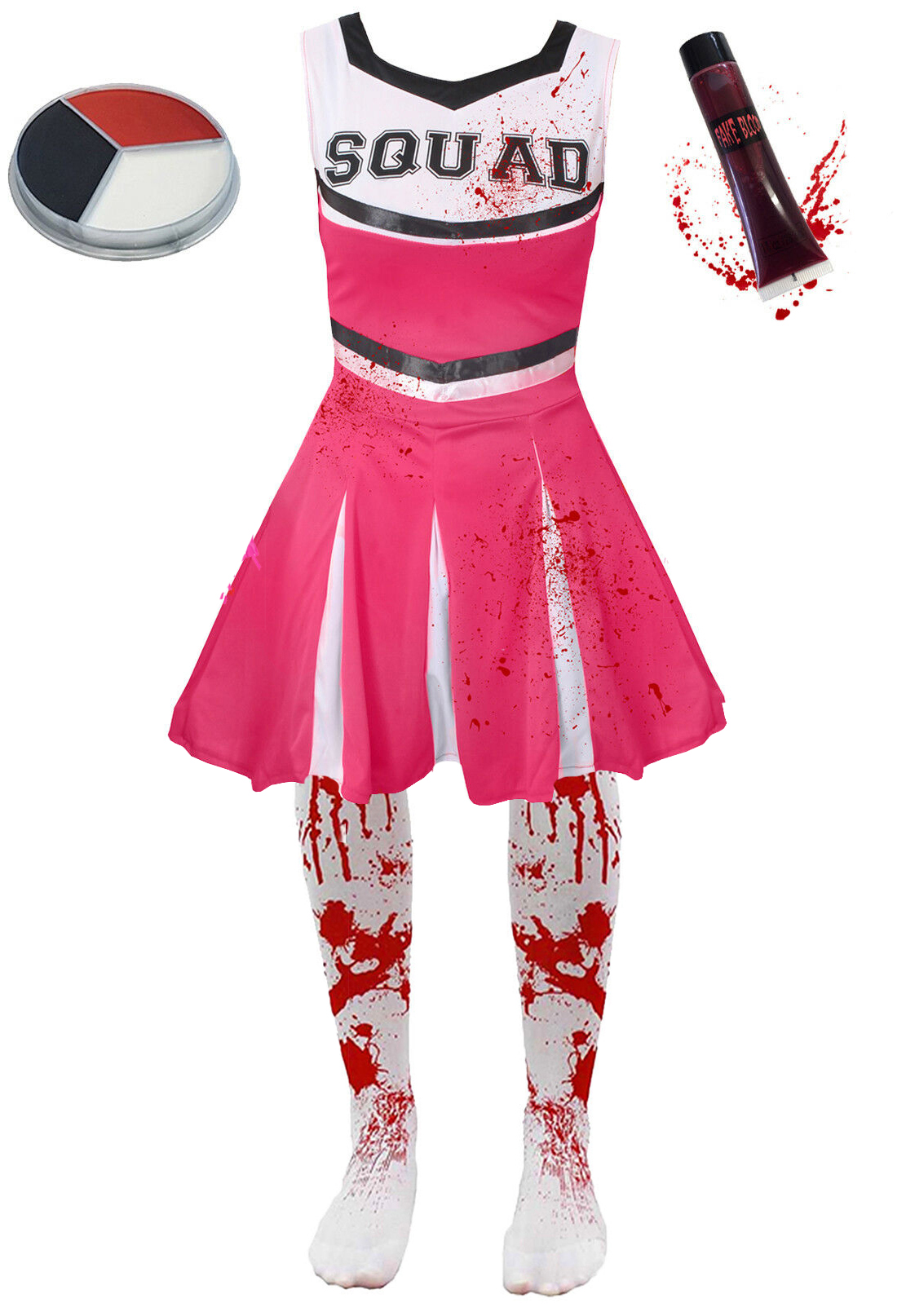 Girls Pink Zombie Cheerleader Halloween Fancy Dres