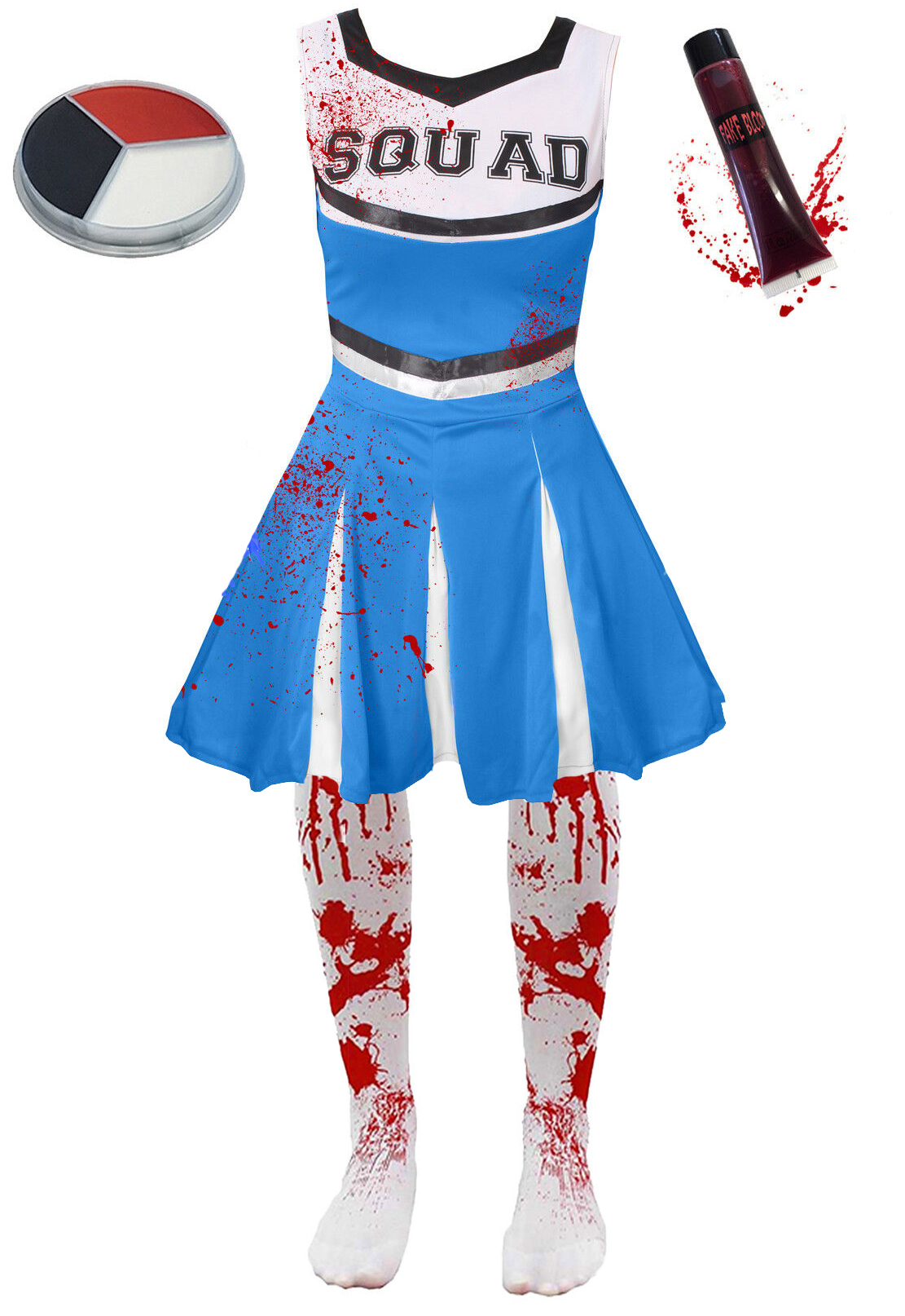 Girls Blue Zombie Cheerleader Halloween Fancy Dres