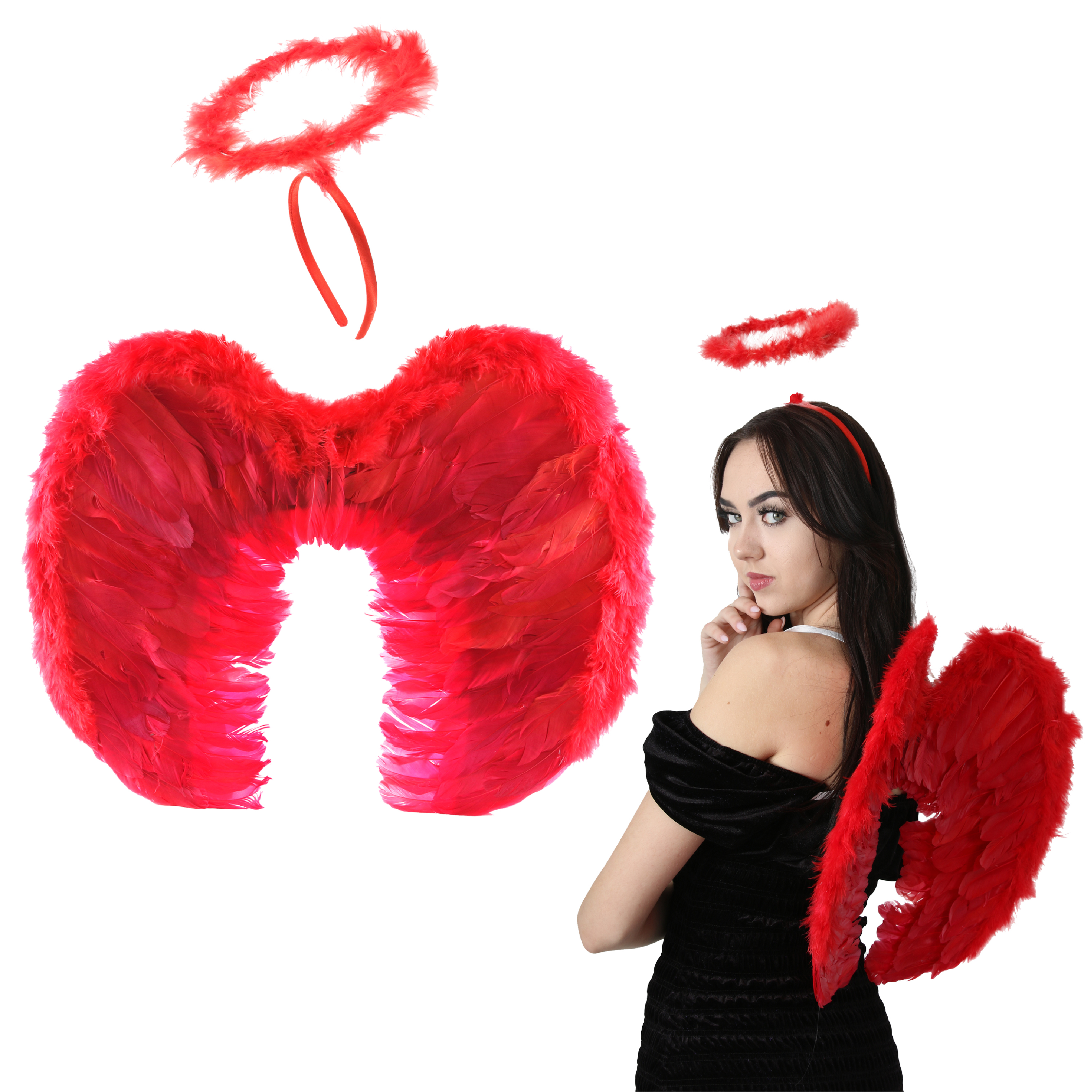 Red Devil Wings and Halo Headband Costume Set