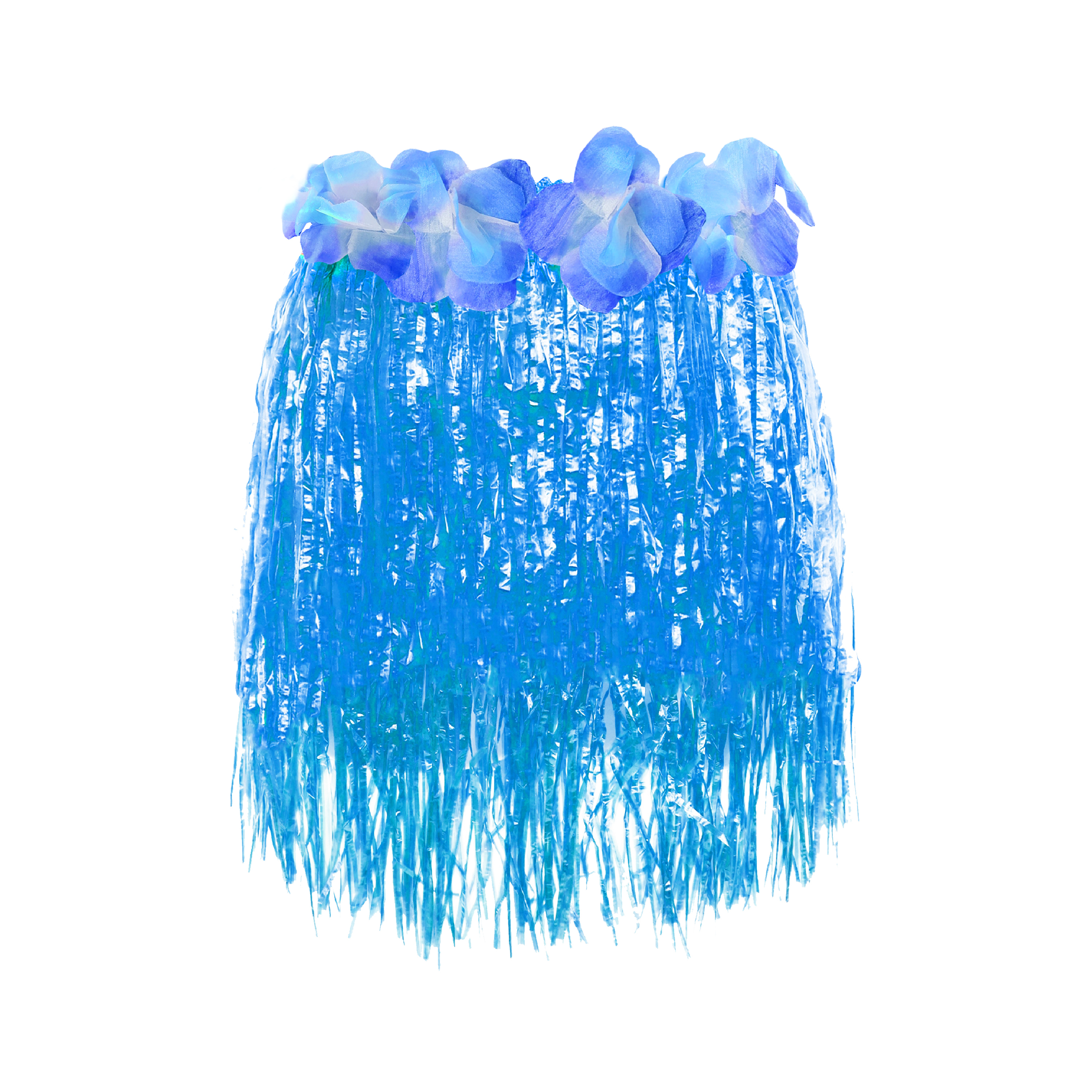40cm Hawaiian Short Blue Hula Skirt with Blue Wais