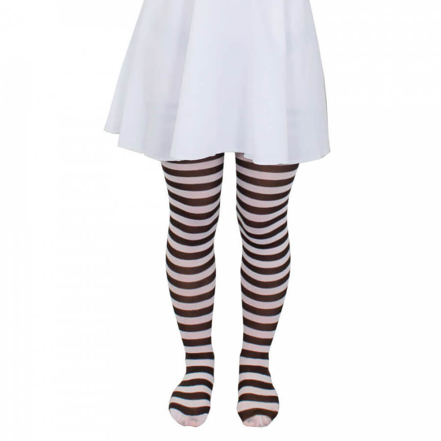 Childs Black and White Striped Tights