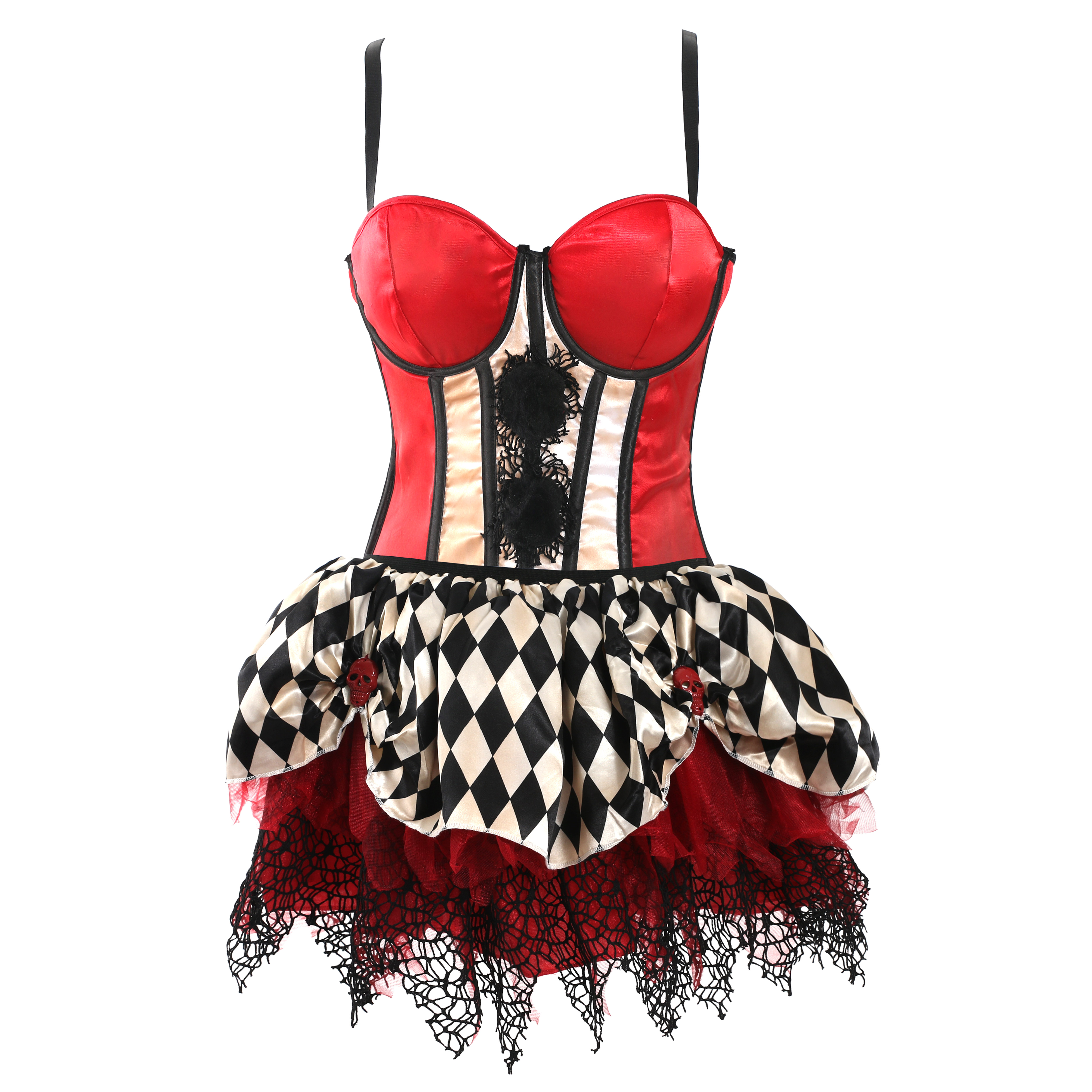 Ladies Harlequin Clown Corset and Tutu Costume