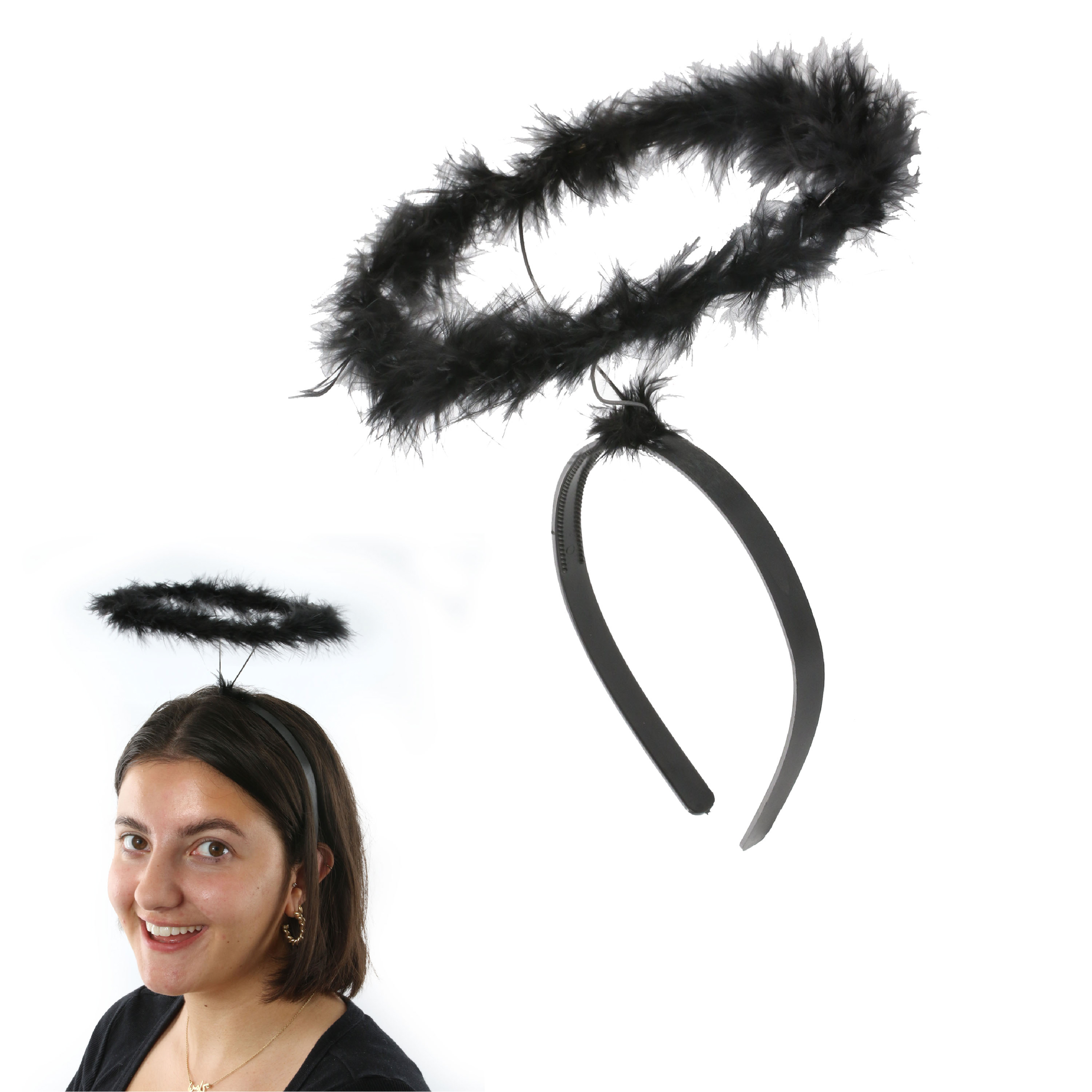 Feathered Black Angel Halo Headband Accessory