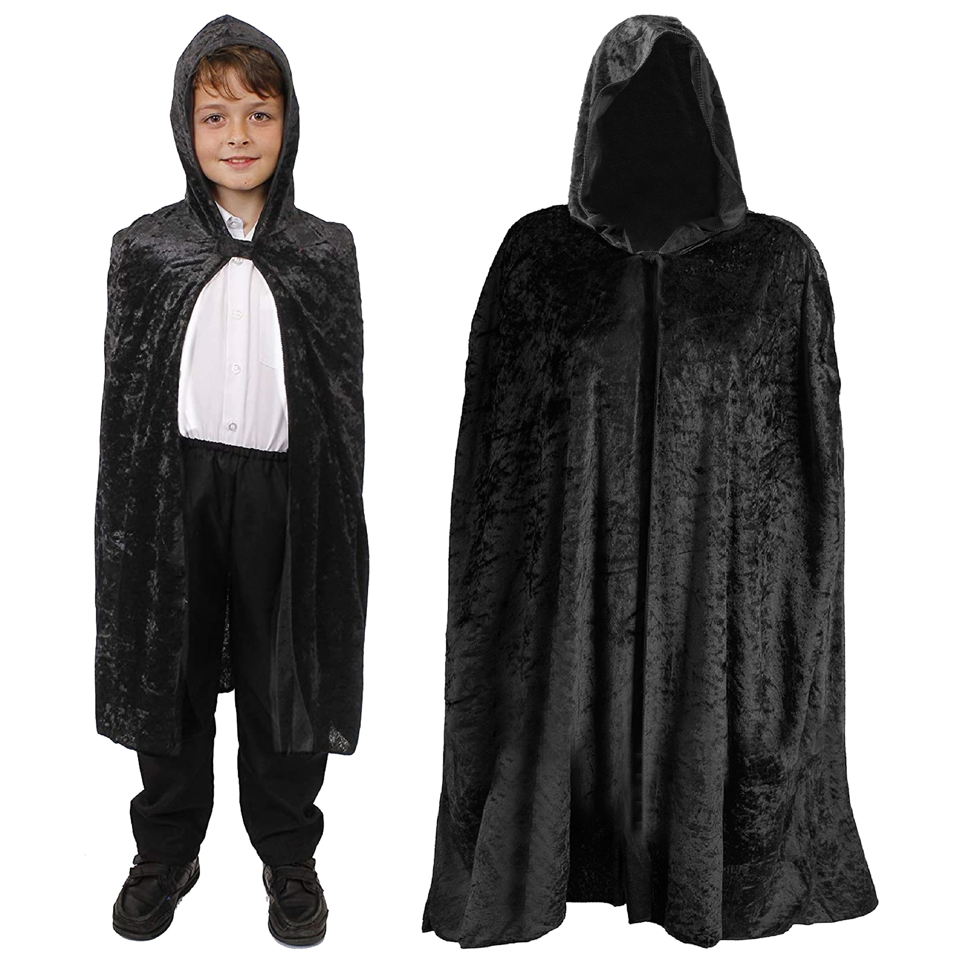 Childs Black Velour Hooded Cape