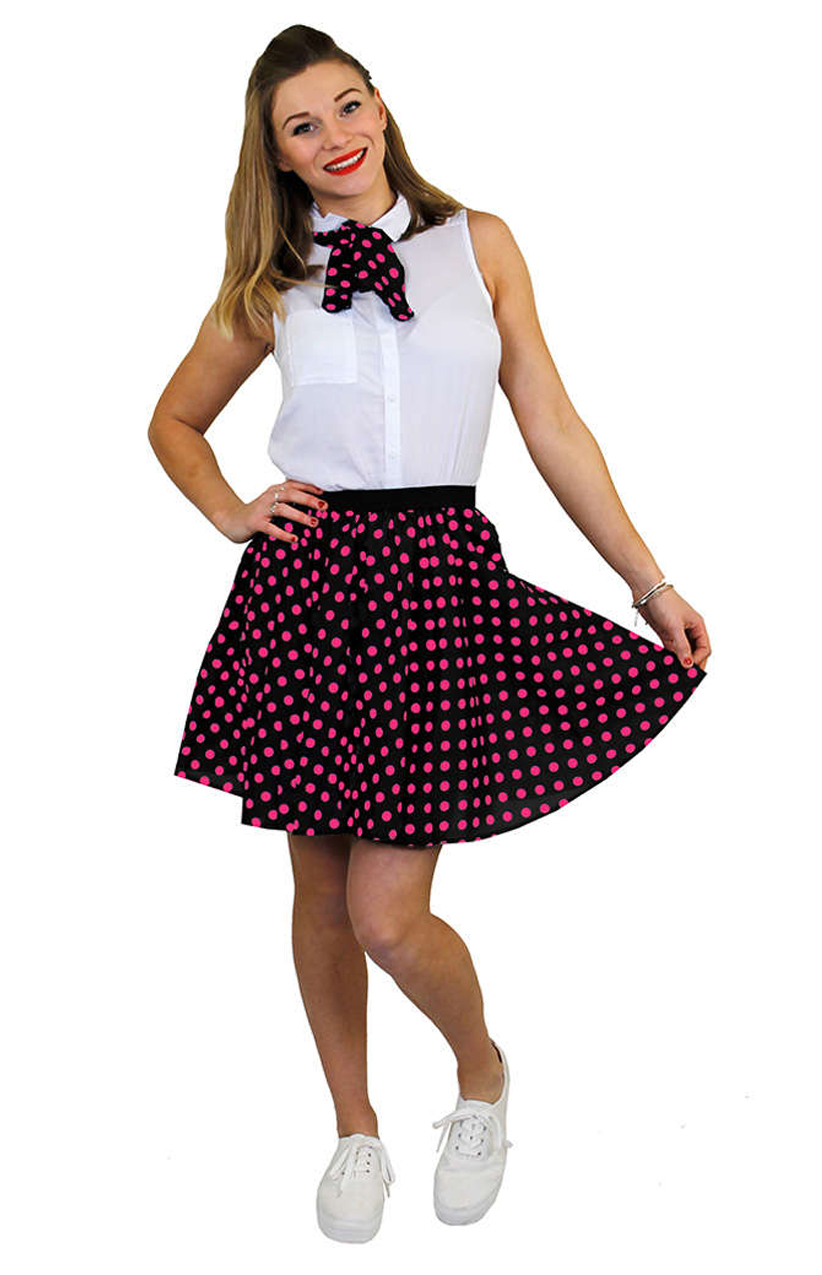 Ladies Short Polka Dot Skirt - Black/Pink