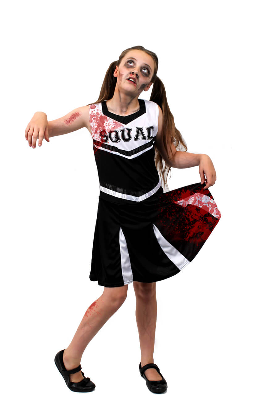 Girls Black Zombie Cheerleader Halloween Fancy Dre
