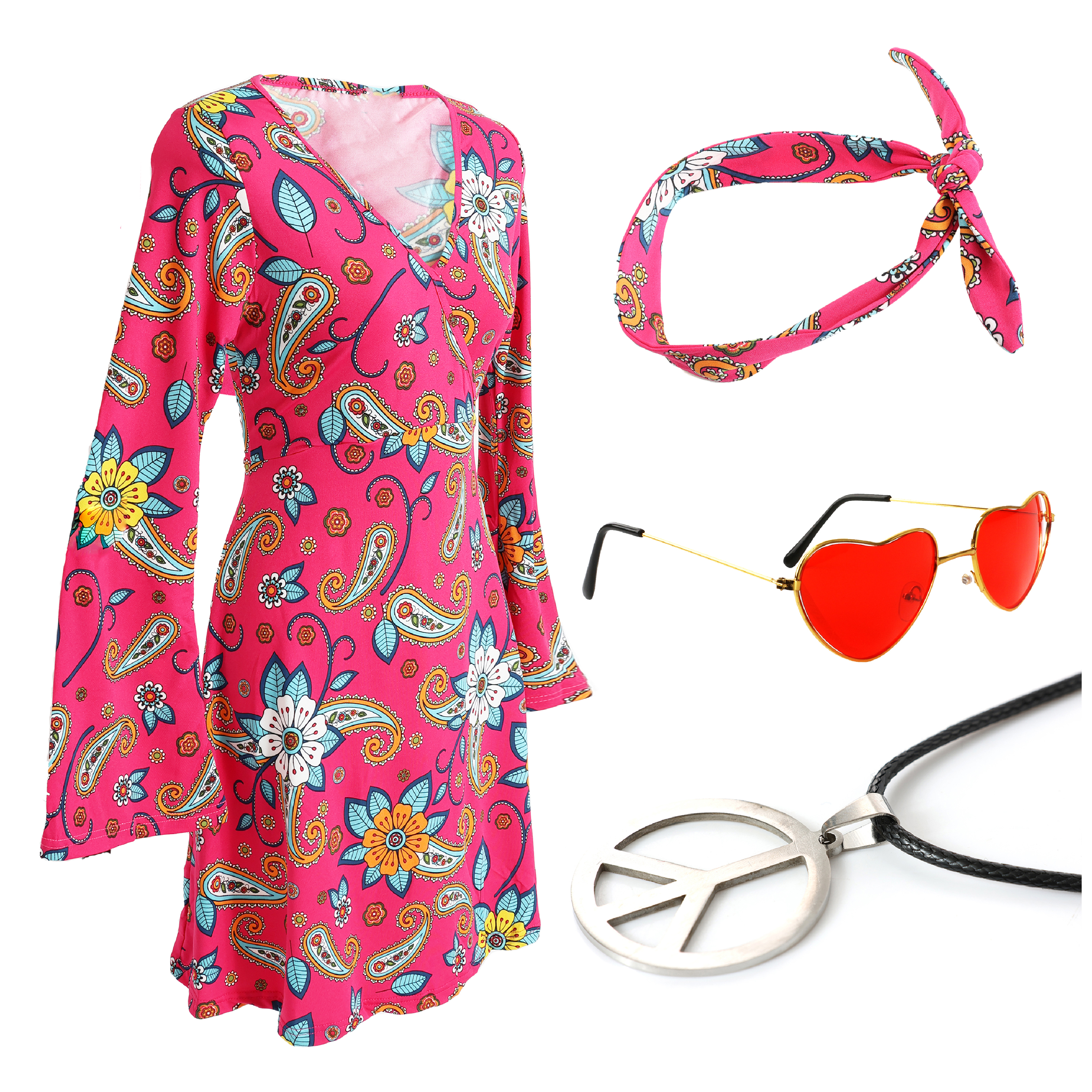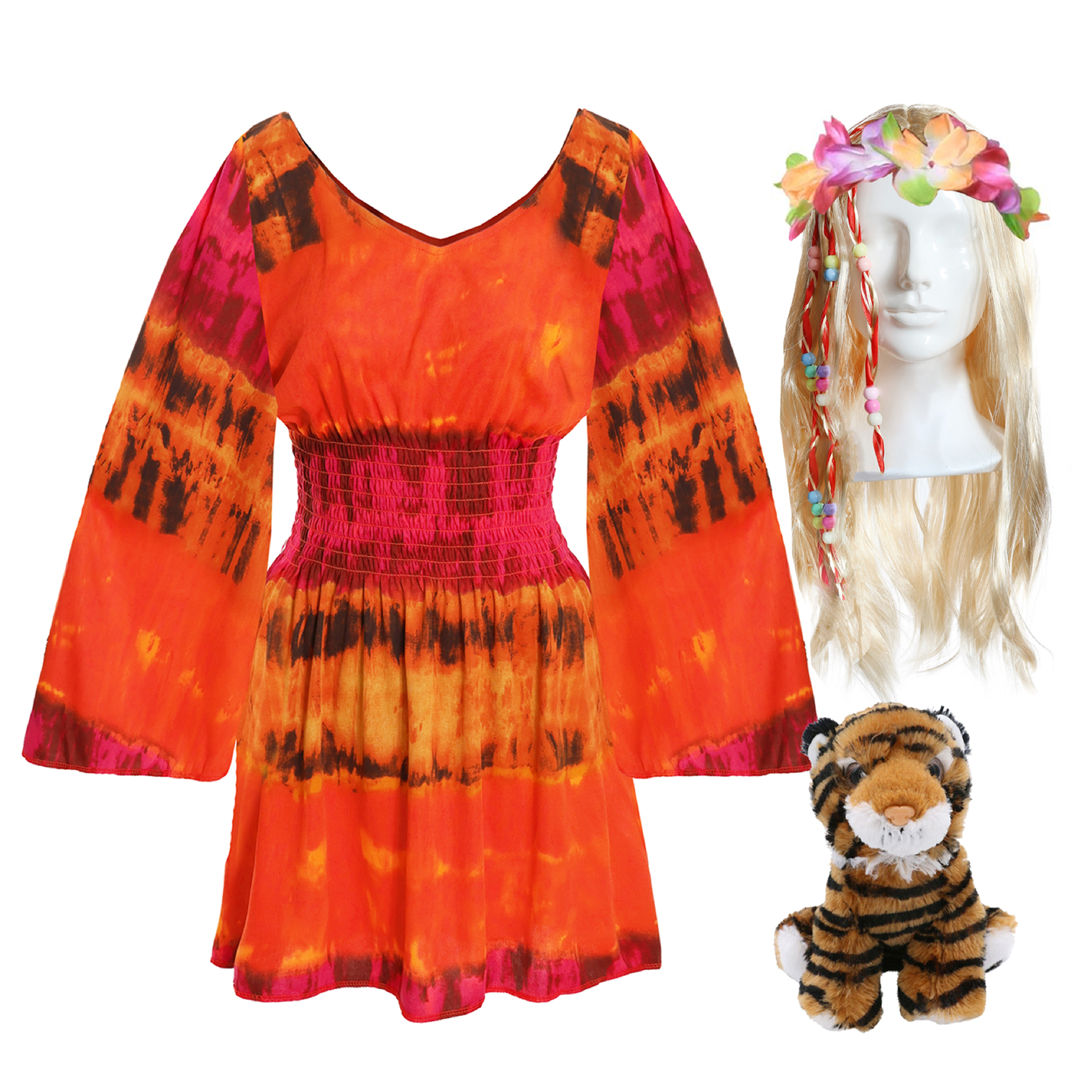Ladies Hippy Costume | 5 Pcs | Dress, Headband, Wi