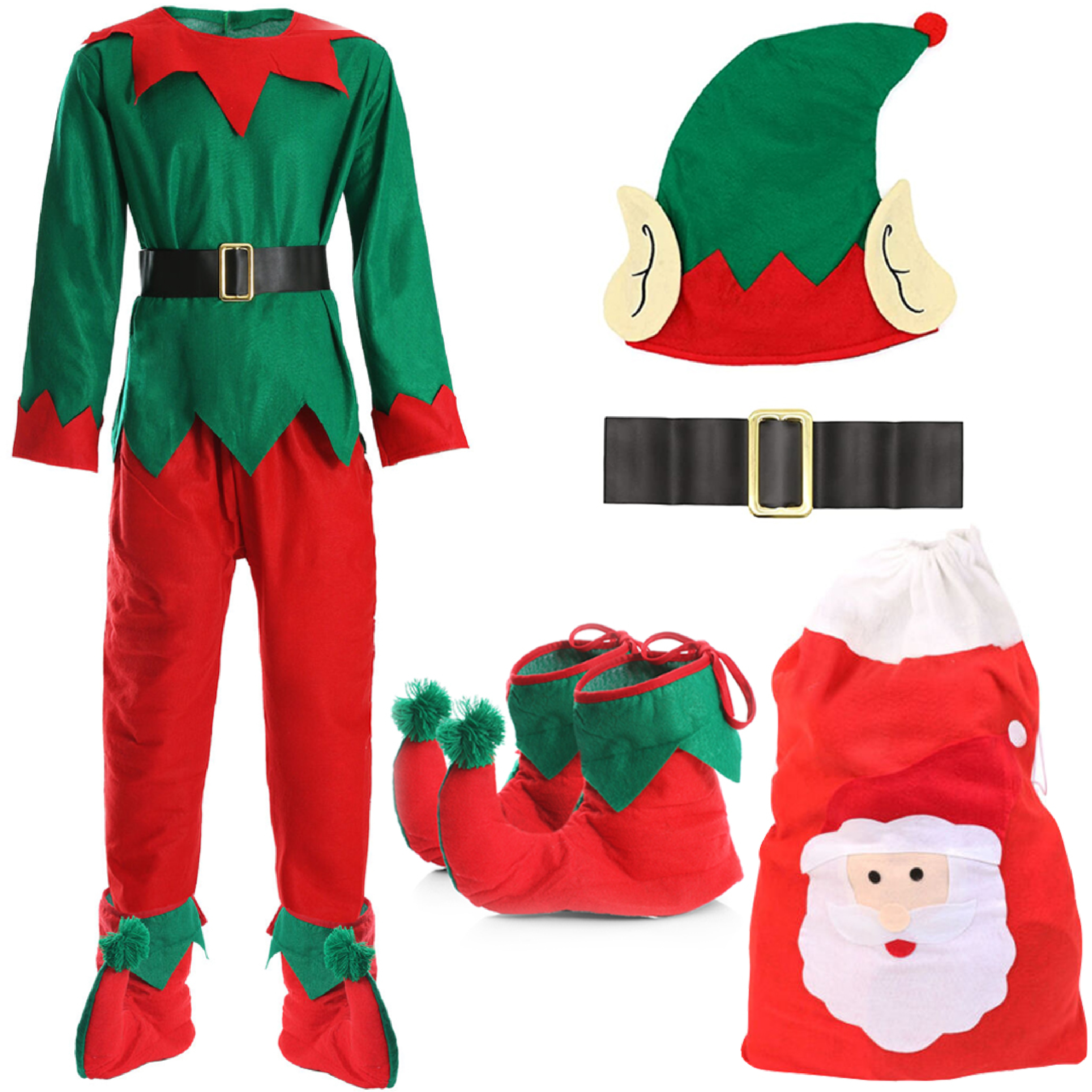 Adults Christmas 6 Piece Elf Costume