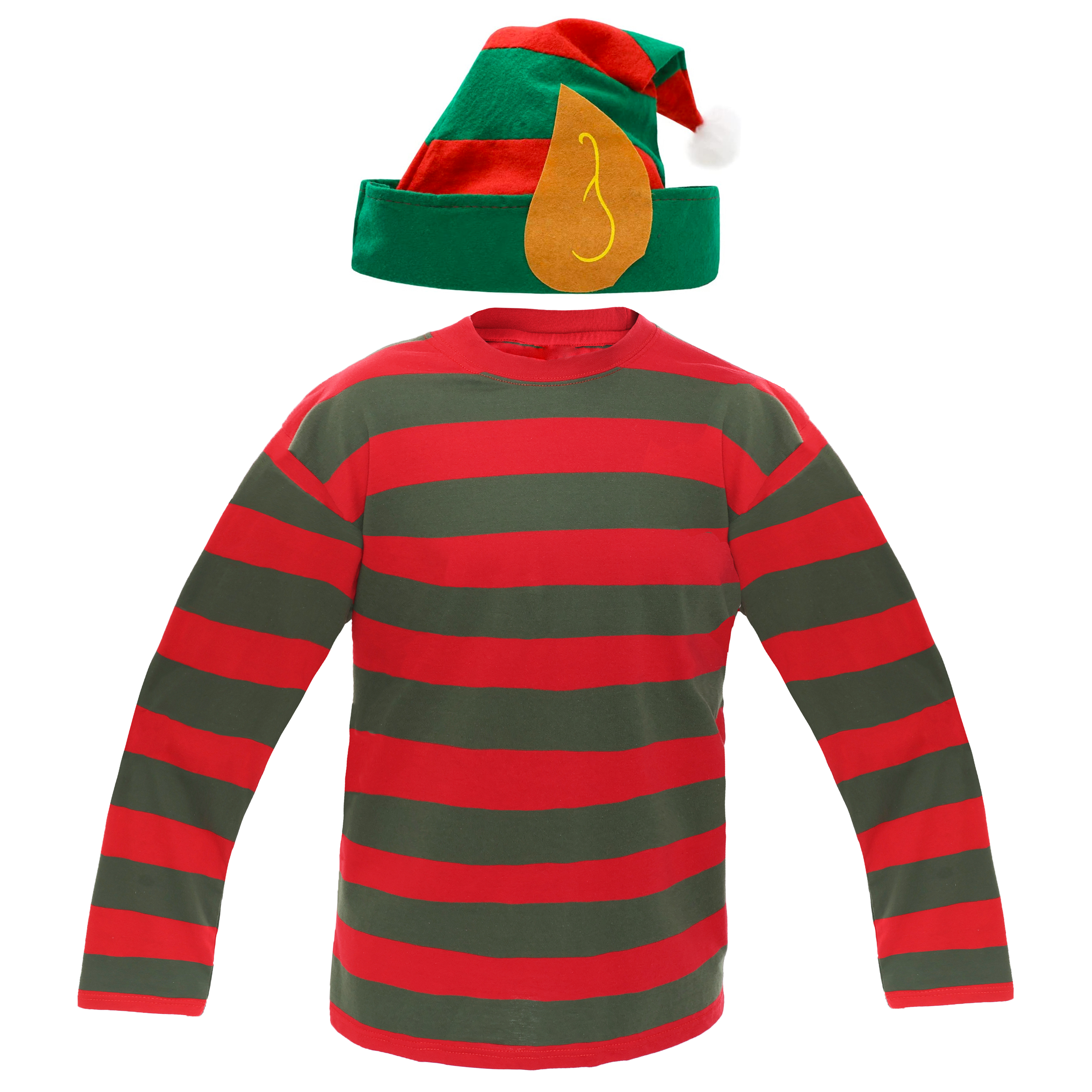 Adults Striped Elf Costume & Elf Hat