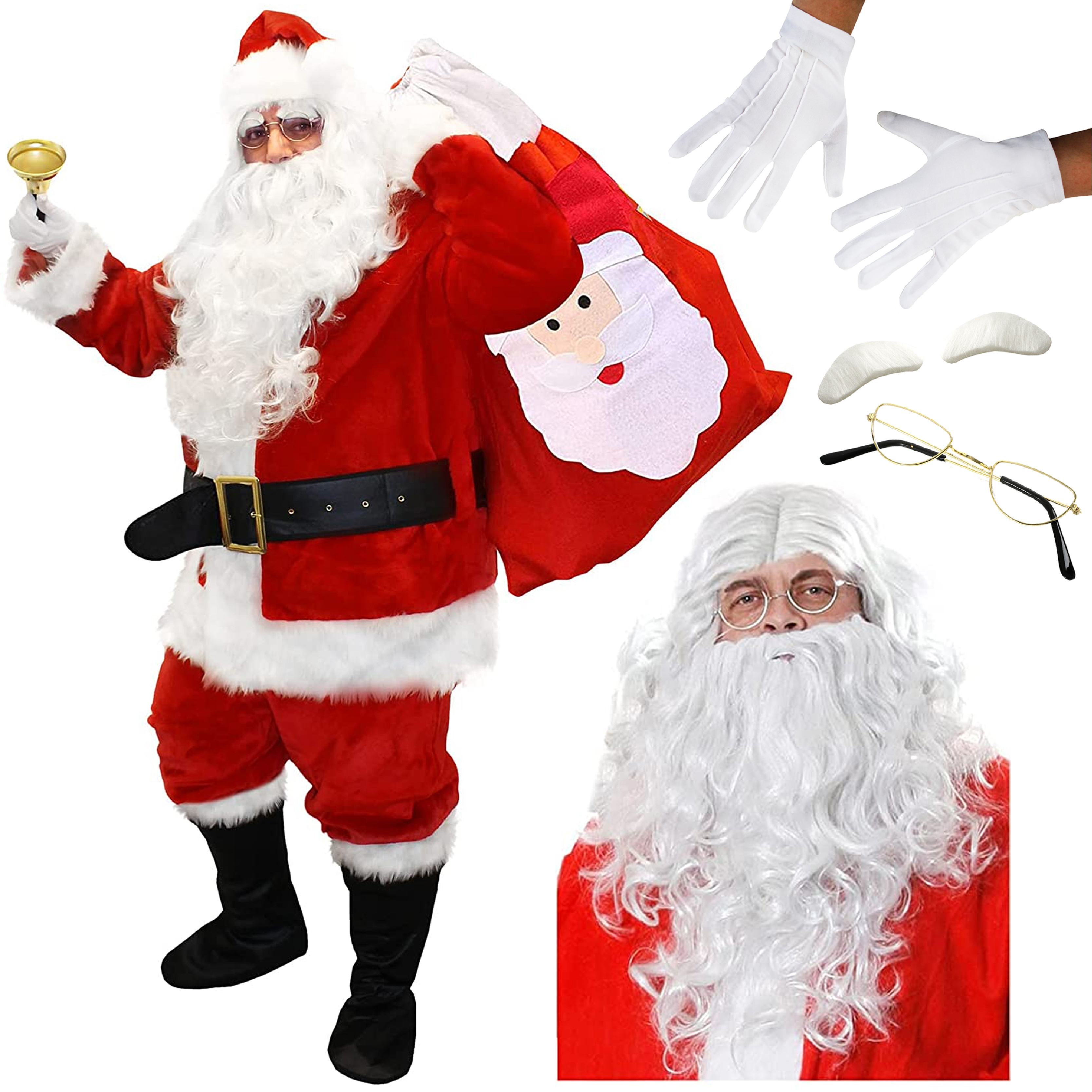 12 Piece Deluxe Santa Costume Set with Bell