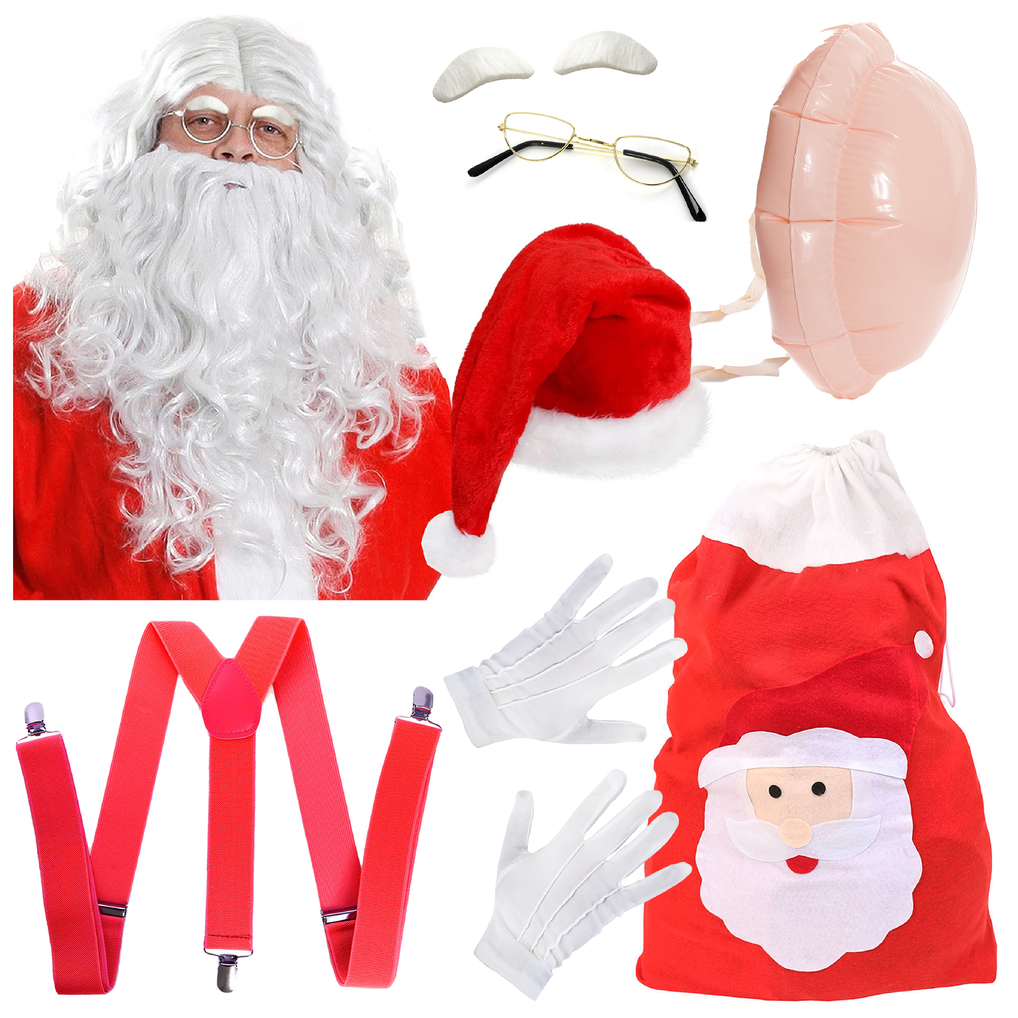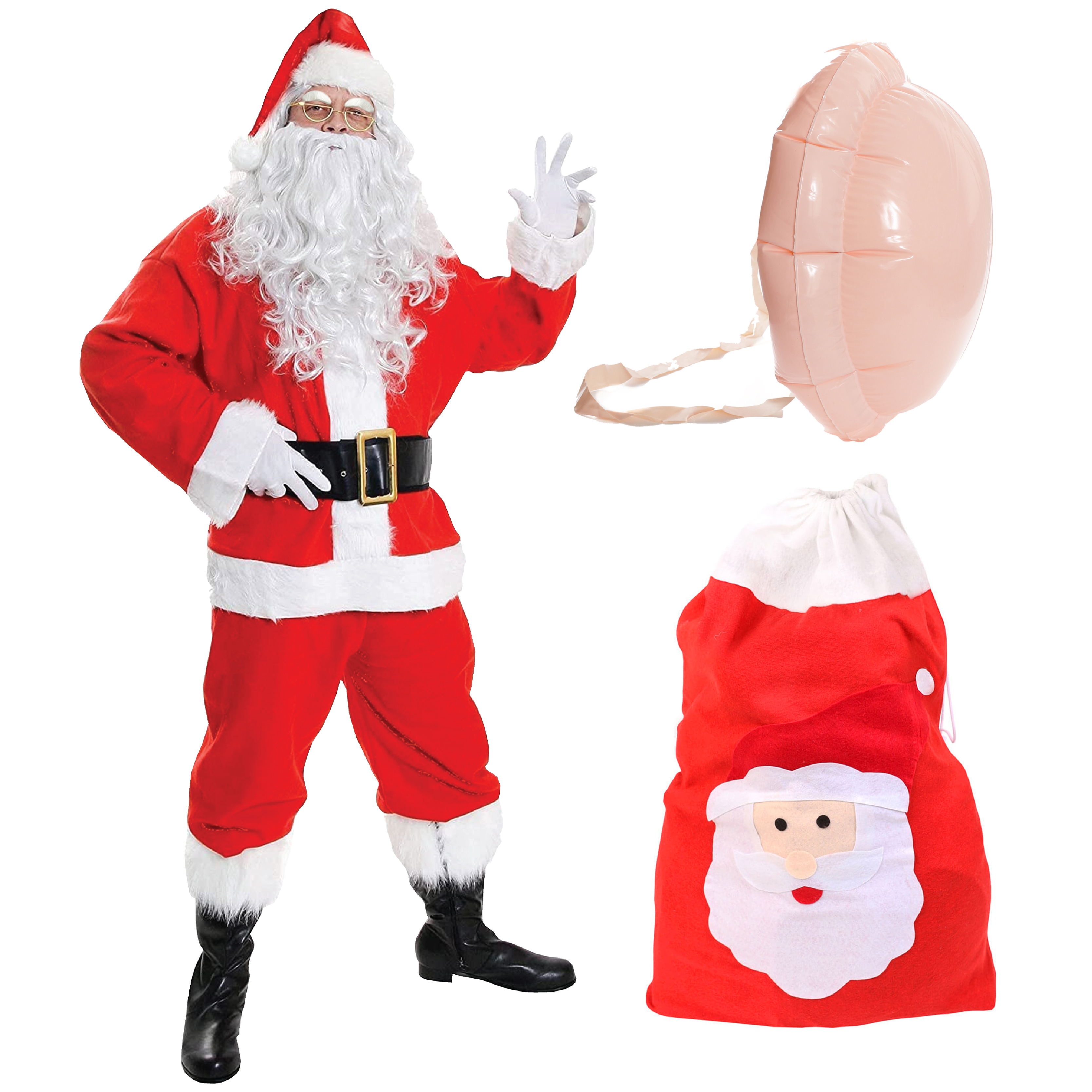10 Piece Santa Costume Set - with Belly & Sack