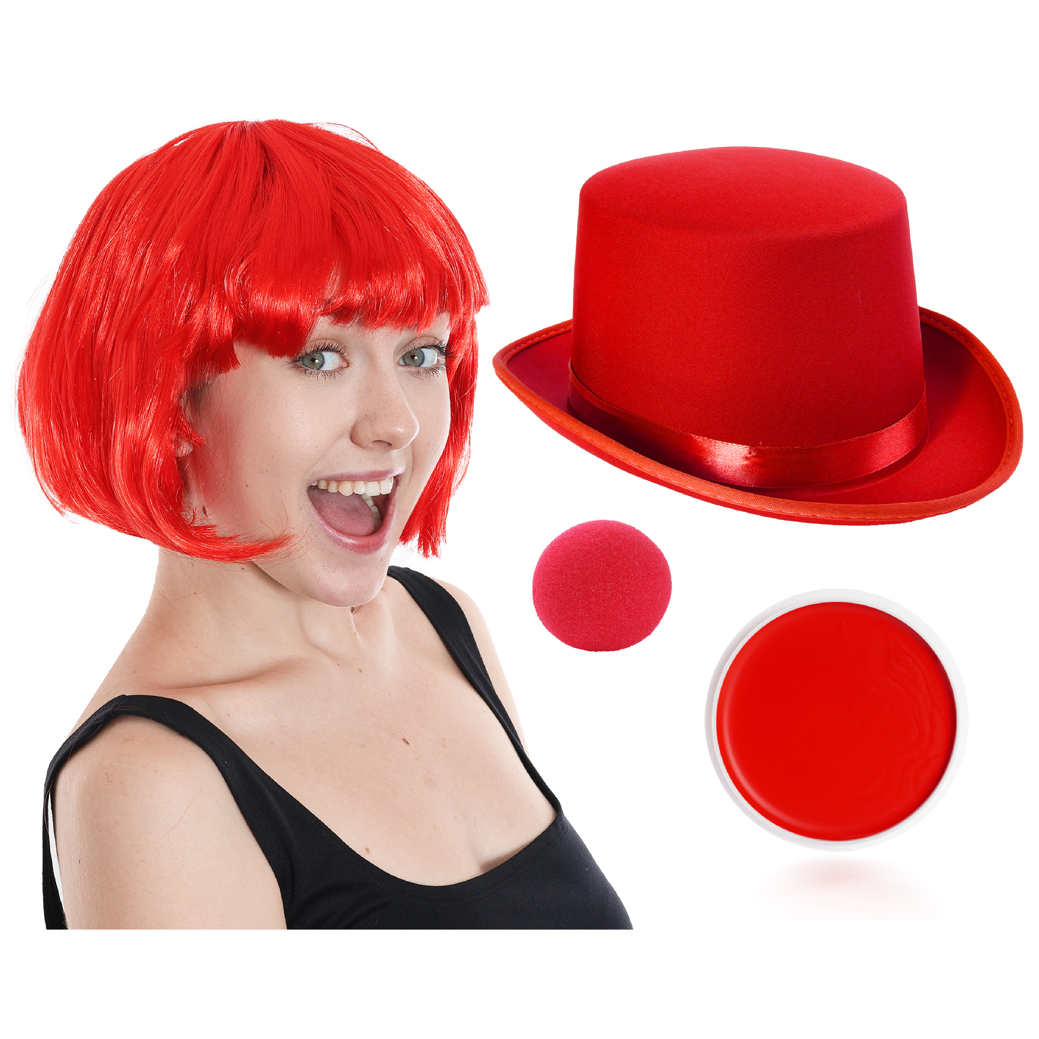Red Nose, Satin Top Hat, Bob Wig & Face Paint