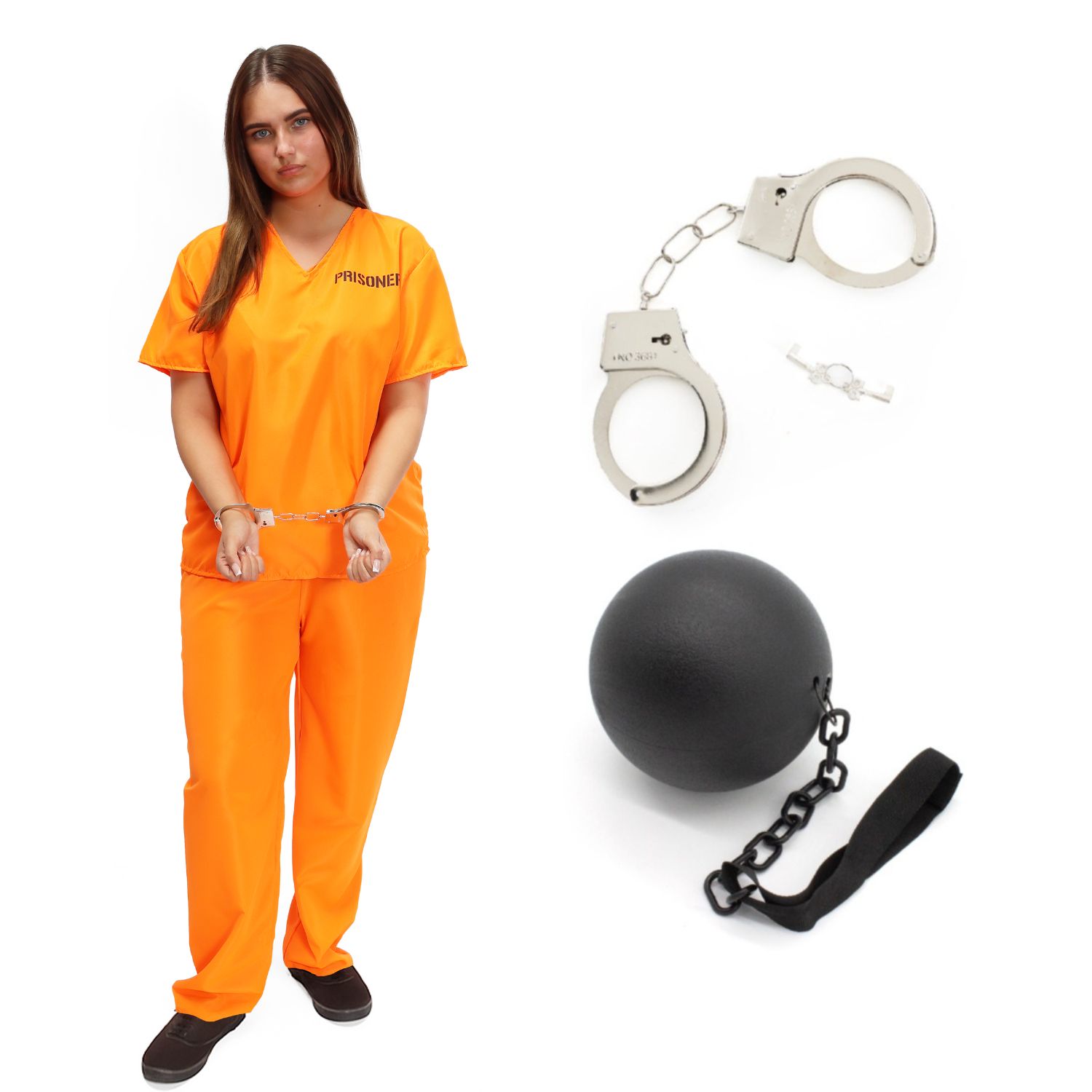 Ladies Orange Prisoner Costume with Shackles