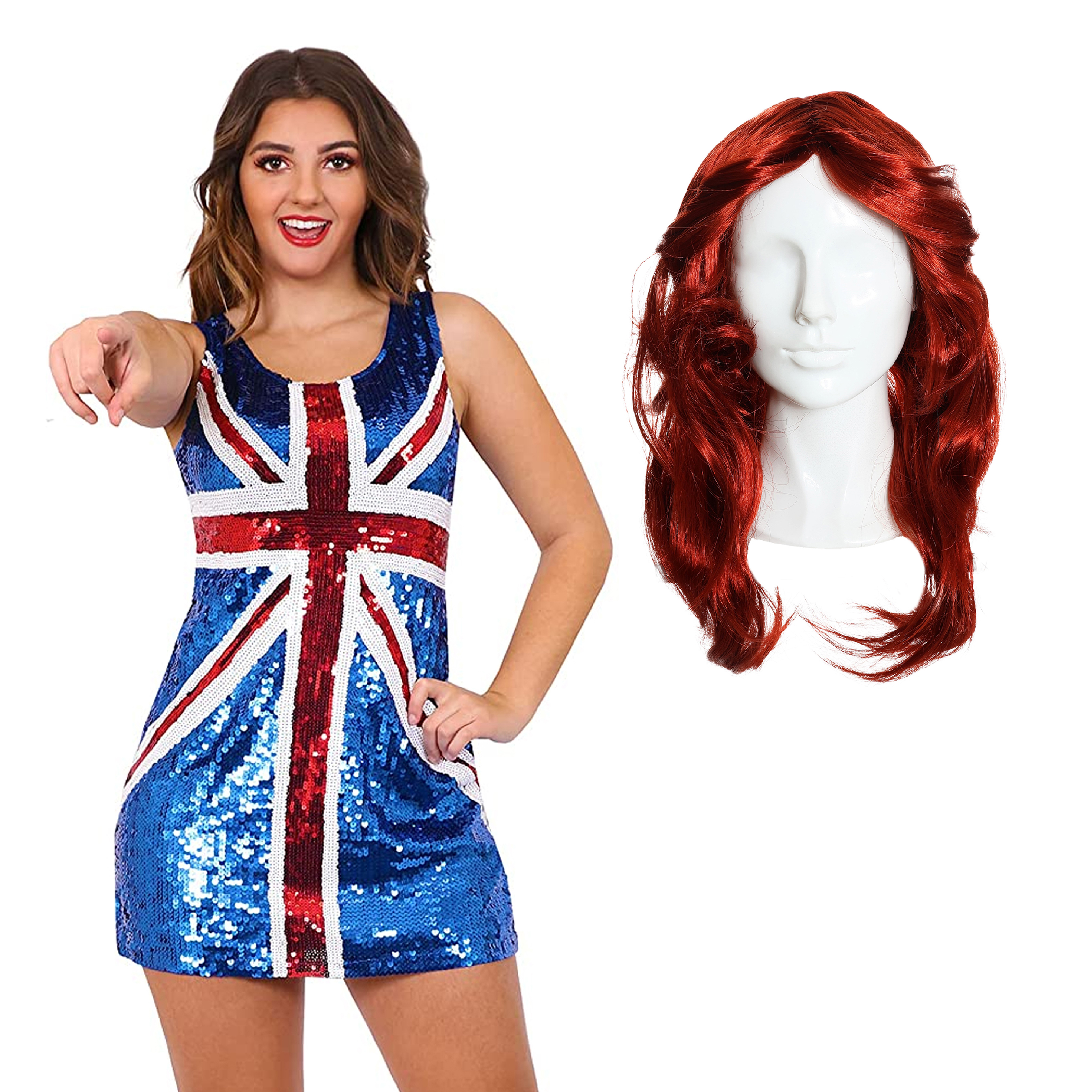 Sequin Union Jack Dress & Ginger Flick Wig