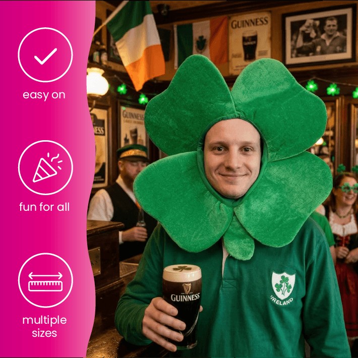 FOUR LEAF CLOVER HAT: Get ready to celebrate all Irish and Ireland based events and teams any occasion it may be, and what better way to represent Ireland than with our Four-Leaf Clover Supporters Hat!