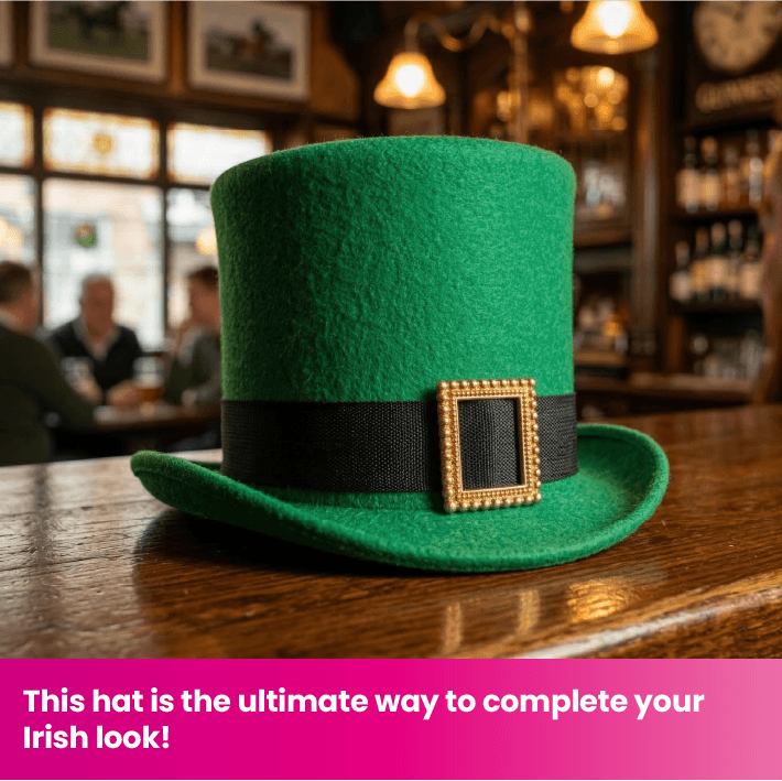 ST PATRICKS DAY IRISH BUCKLE TOP HAT: You won’t be needing a Pot of Gold to look the best for St Patricks Day, so don’t miss out on picking up our Irish Top Hat, your perfect costume accessory for any Irish occasion or event!